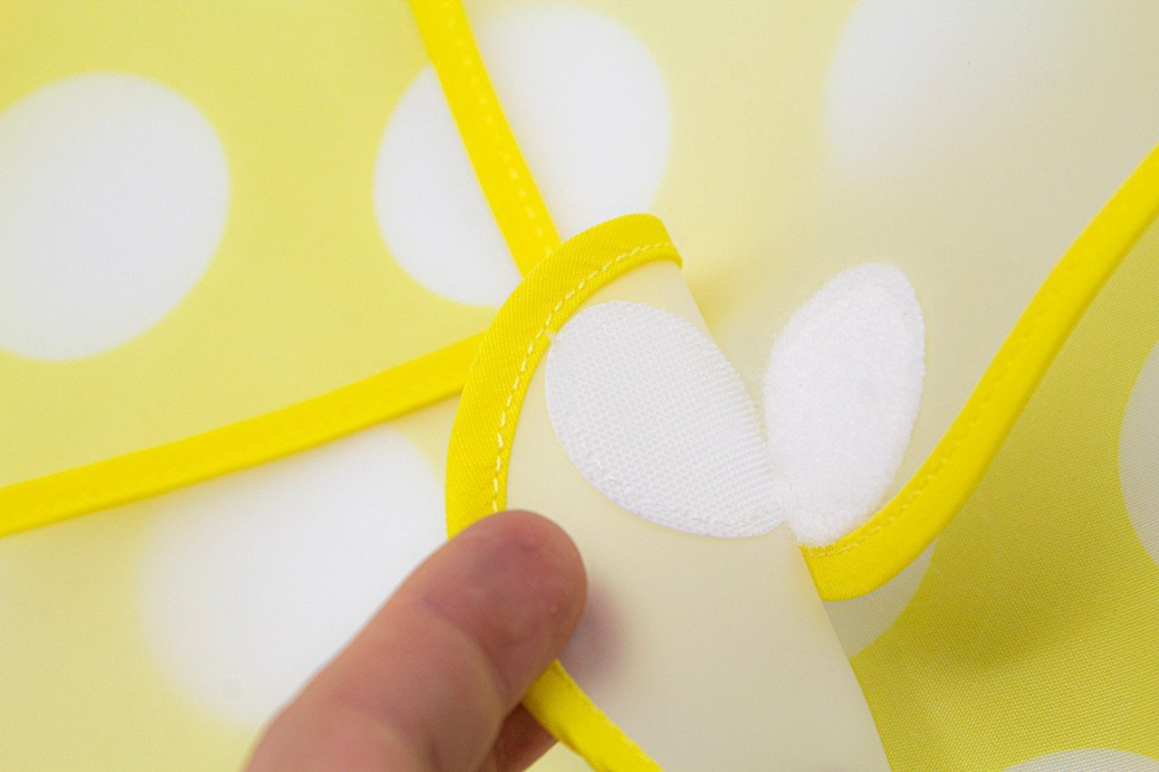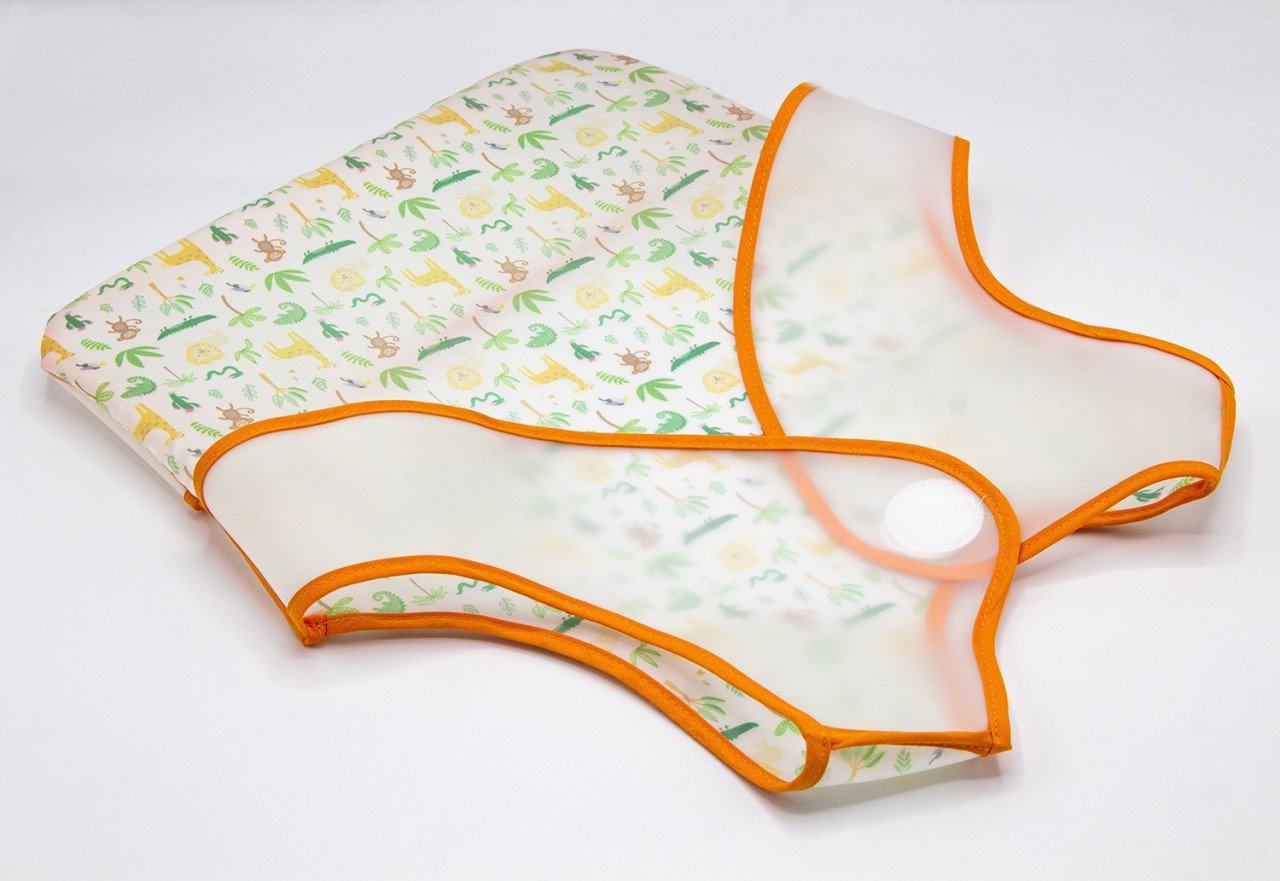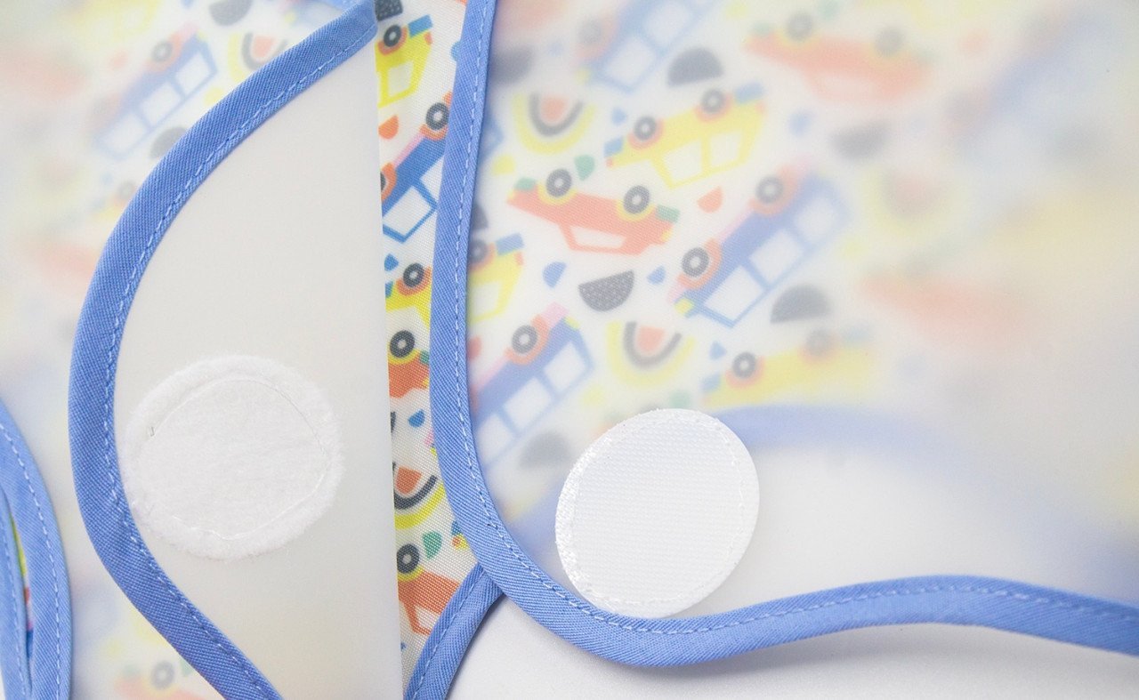 Baveta pentru copii va proteja eficient hainele copilului impotriva murdaririi in timpul mesei sau jocului.