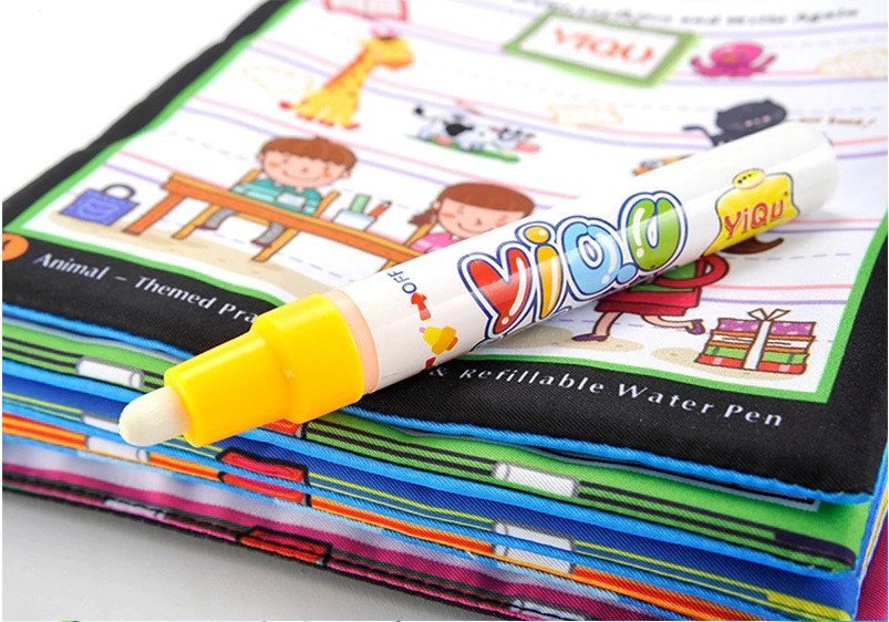 - Umpleti stiloul cu apa, apoi colorati pe pagini. La contactul cu apa si pe masura ce colorati, imaginile ascunse vor aparea pentru a fi descoperite de cei mici.