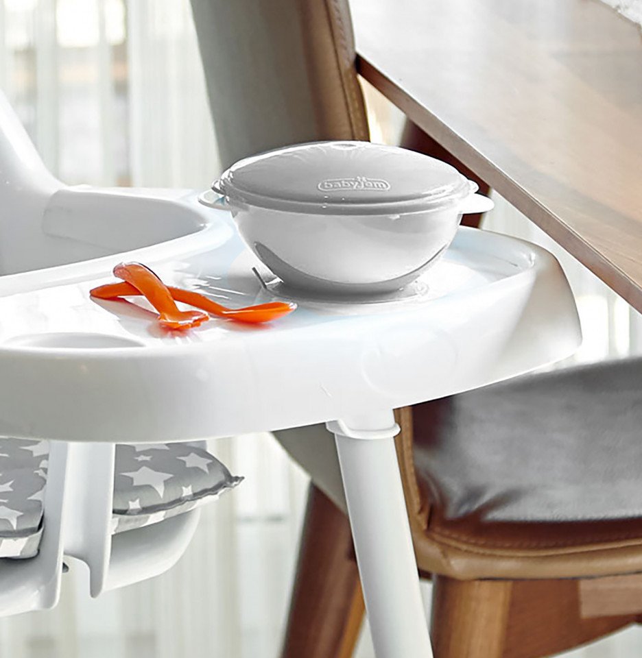 Castron cu ventuza si capac BabyJem (Culoare: Gri)