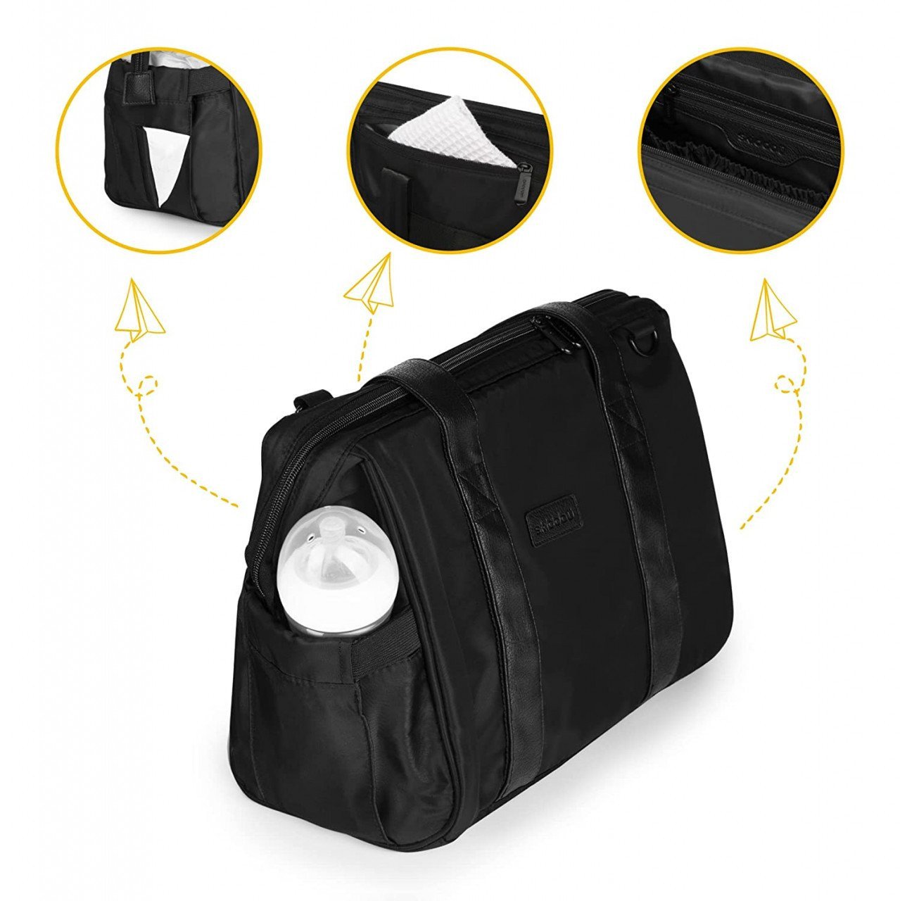 – Incapator: contine toate elementele necesare pentru un copil, de ex. biberoane, scutece, haine de schimb, servetele, jucarii si multe altele. Perfect pentru a iesi la plimbare in parc, in oras sau pentru excursii.