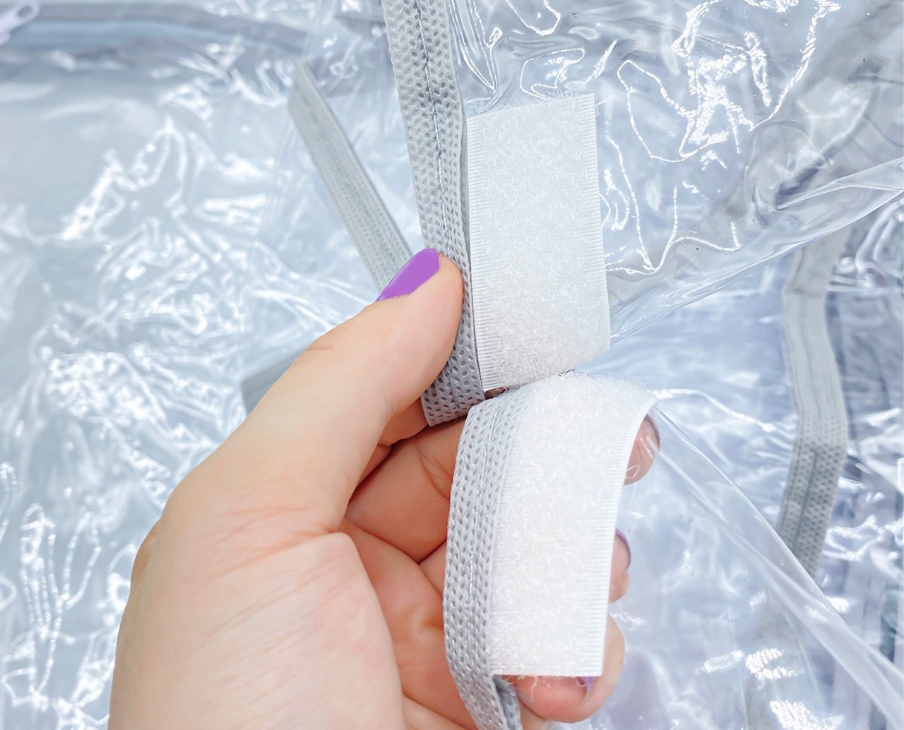 * Fereastra cu prindere cu velcro ce permite continuarea plimbarii fara a indeparta intreaga husa.