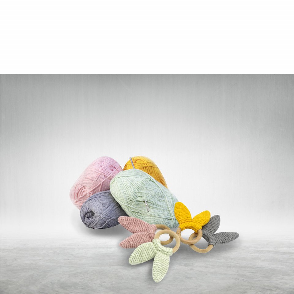 Design cu urechiuse tricotate realizate din fire de bumbac 100% lucrate manual.