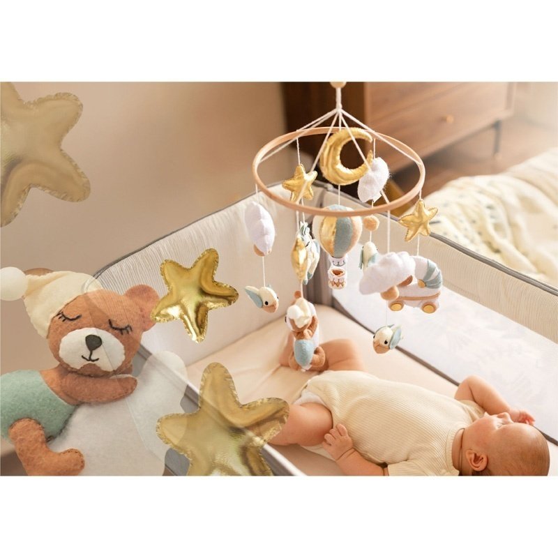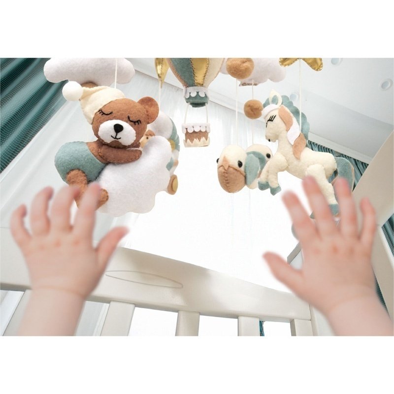 Mascotele în formă de animalute, stelute si luna sunt cusute manual din fetru delicat și umplutură moale. Aspectul lor plăcut și mișcarea subtilă de legănare creează o senzație de liniște și siguranță, ideală pentru momentele de relaxare și somn.