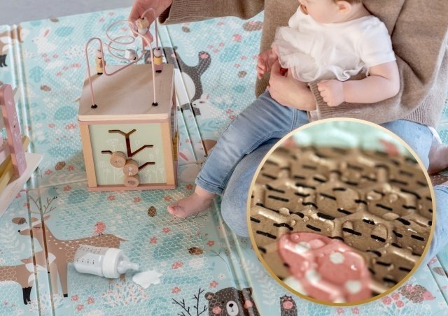 Covorașul Neno Mondo are o suprafață impermeabilă, concepută special pentru a preveni absorbția umidității. Această caracteristică ajută la evitarea formării unui mediu propice dezvoltării bacteriilor și mucegaiului, asigurând astfel siguranța și igiena copilului tău.
