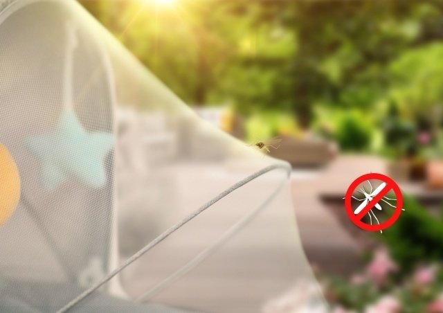 Plasa delicată împotriva țânțarilor, integrată în copertină, protejează copilul de insecte. Alimentarea pe baterii permite funcționarea dispozitivului timp de câteva ore, chiar și fără acces la o sursă de curent electric.