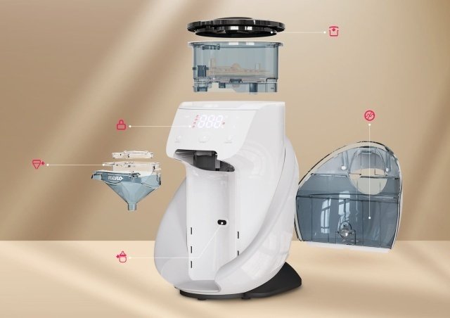 Expresorul pentru lapte praf este compatibil cu diverse tipuri de biberoane și cu majoritatea formulelor de lapte praf. Pregătește biberonul perfect în câteva secunde, dozând precis cantitatea de lapte praf și încălzind apa la temperatura ideală – fără riscuri, fără dezordine și fără stres.