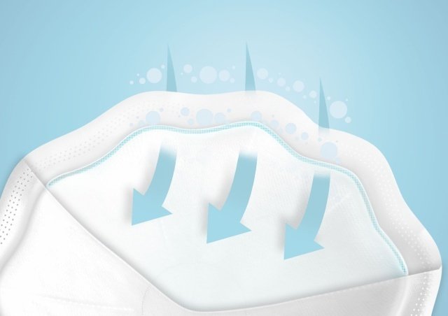 Cum reușește o dischetă ultra-subțire să absoarbă cantități mari de lichid? Secretul absorbției sale excelente constă în stratul realizat din polimeri superabsorbenți de producție japoneză.