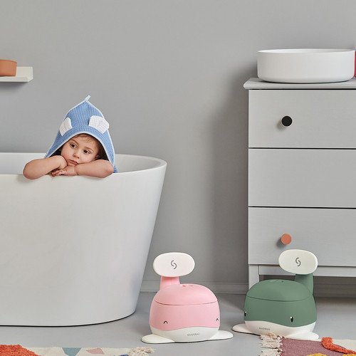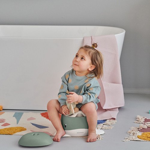 Olita pentru copii Pottili cu capac in forma de balenuta de la Skiddou este ideala pentru realizarea cu usurinta a tranzitiei de la scutec la toaleta pentru adulti, reprezentand etapa intermediara acestora.