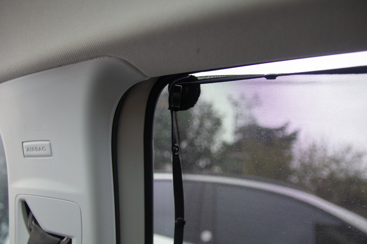 – Pentru a atasa parasolarul, pur si simplu imbracati fereastra. Fereastra masinii este acum complet acoperita.