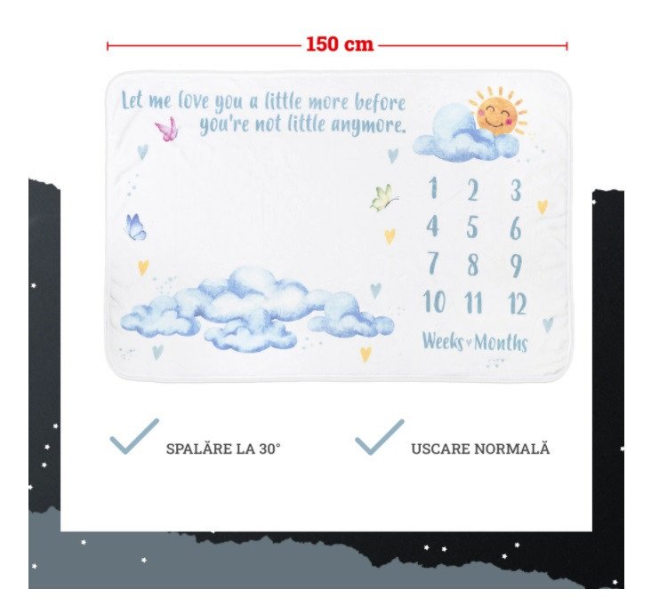 Alege sa imortalizezi toate aceste momente minunate si nu vei regreta achizitionand acum o paturica milestone de la drool
