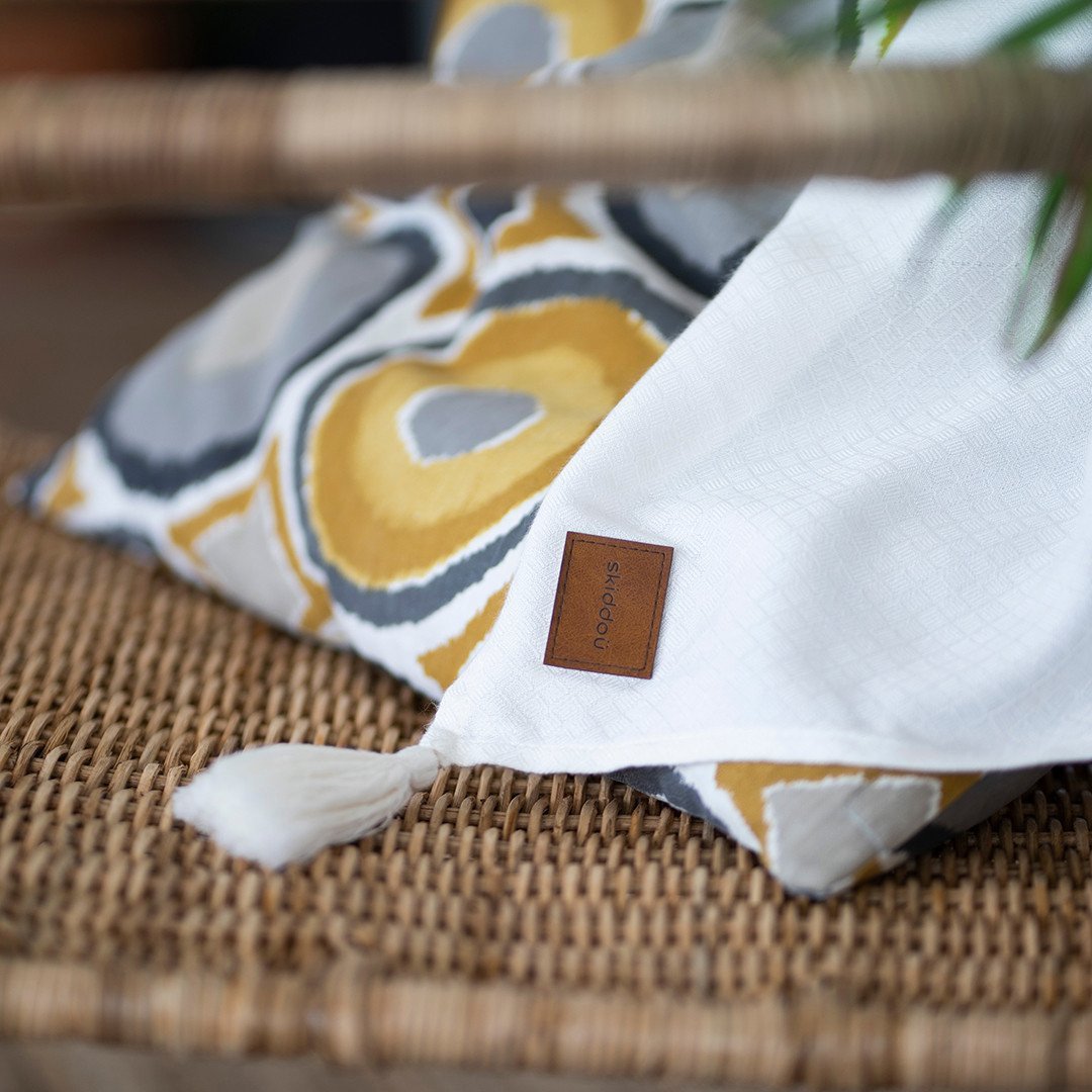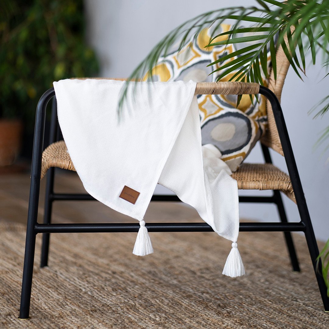 – patura va atrage cu siguranta persoanele care cauta ceva deosebit, aceasta fiind o combinatie de design scandinav cu o atmosfera boho. Tesatura cu structura 3D si ciucuri la colturi face ca paturica sa fie este universala