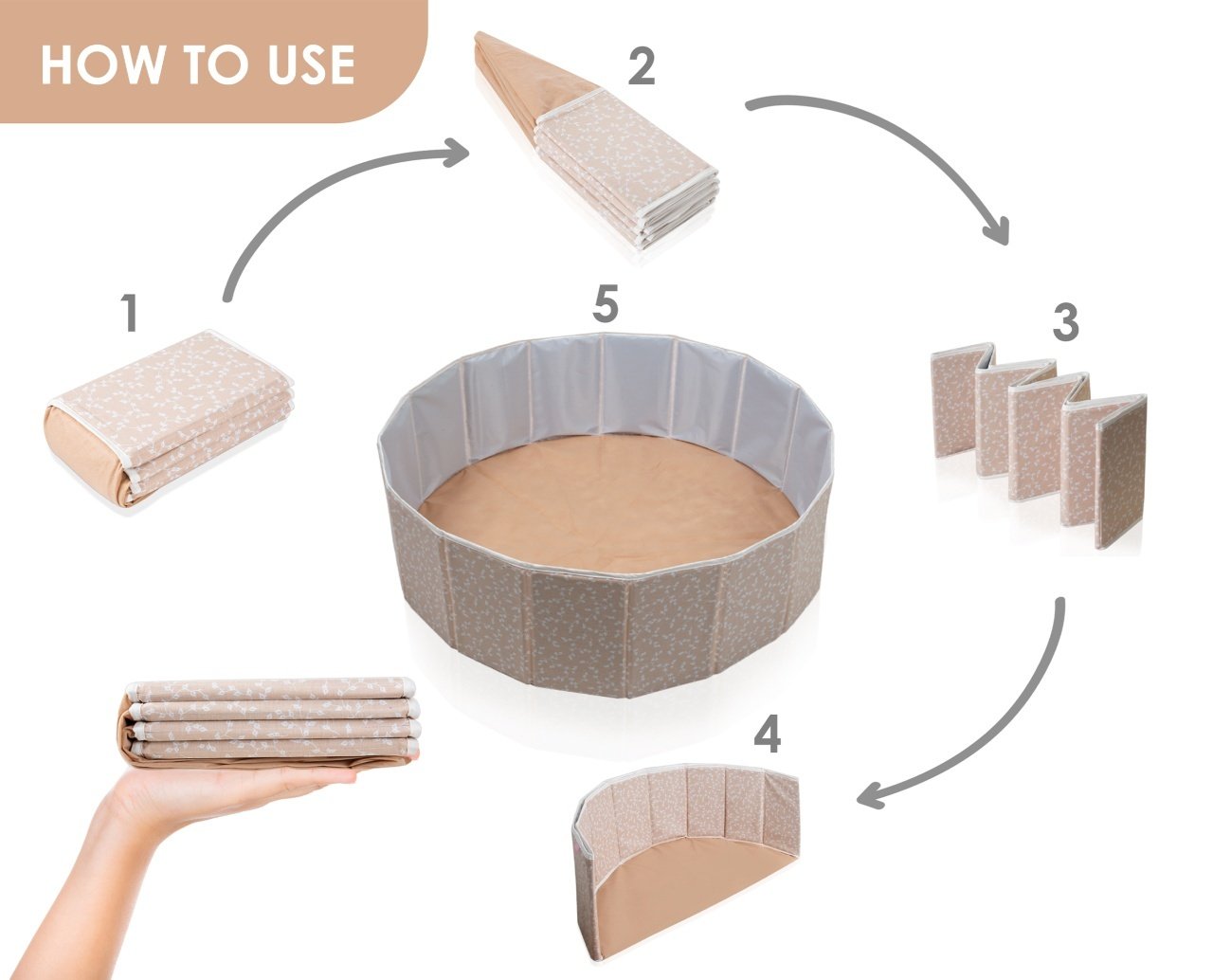 Piscina uscata pliabila cu bile, BabyJem, 30×83 cm, 100 bile albe, somon