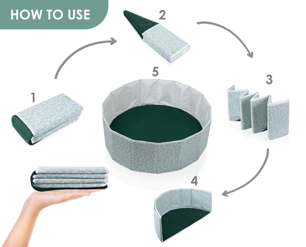Piscina uscata pliabila cu bile, BabyJem, 30×83 cm, 100 bile albe, verde