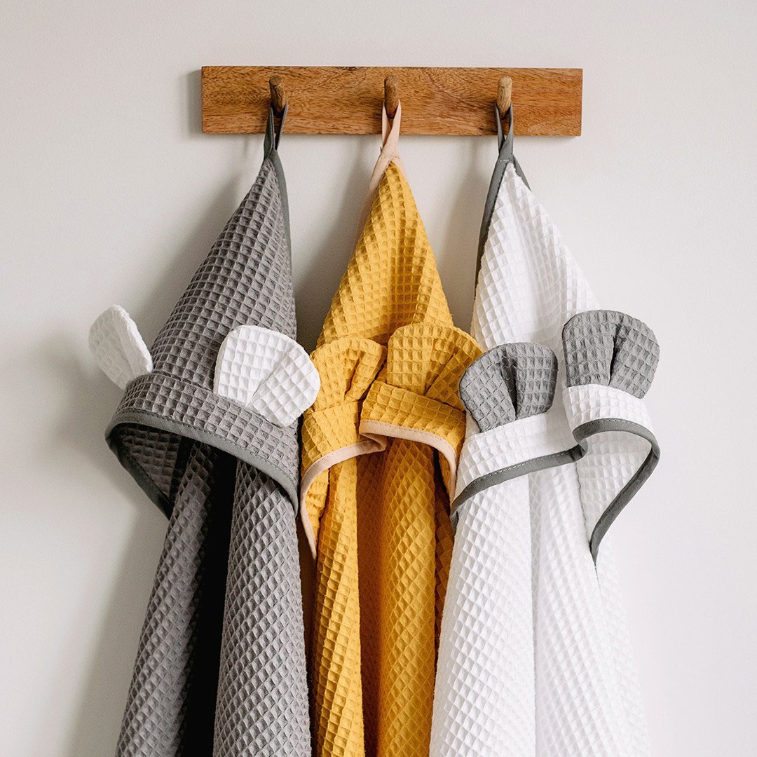 – vine ambalata intro cutie de carton cu design atractiv ce poate cu usurinta sa fie facuta cadou. Prosopelele cu gluga si urechiuse vin impachetate cu grija fiind legate cu o panglica de bumbac pentru a adauga si mai multa eleganta!