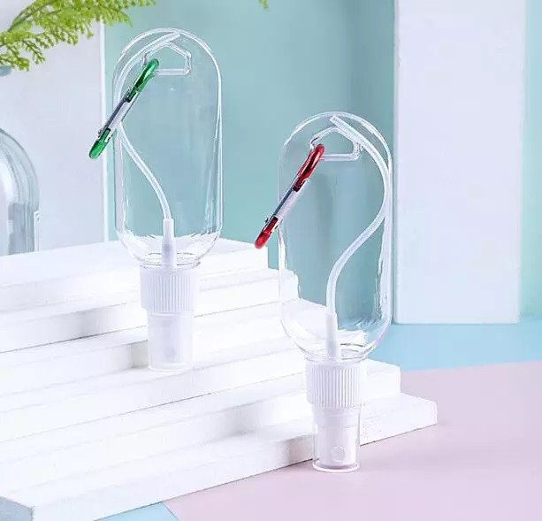 De asemenea, are prevazut cu clesti de tip breloc facand usoara prinderea acestuia de orice si facilitand dezinfectarea mainilor sau obiectelor fara a deschide geanta/rucsacul.