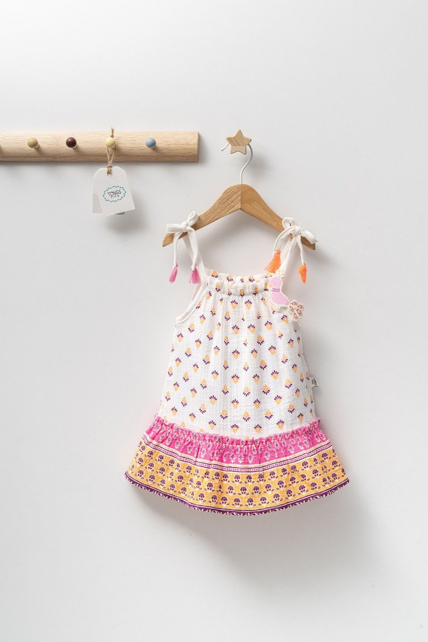 Rochita de vara din muselina pentru fetite Peacock reprezinta o combinație de design spectaculos și confort absolut.