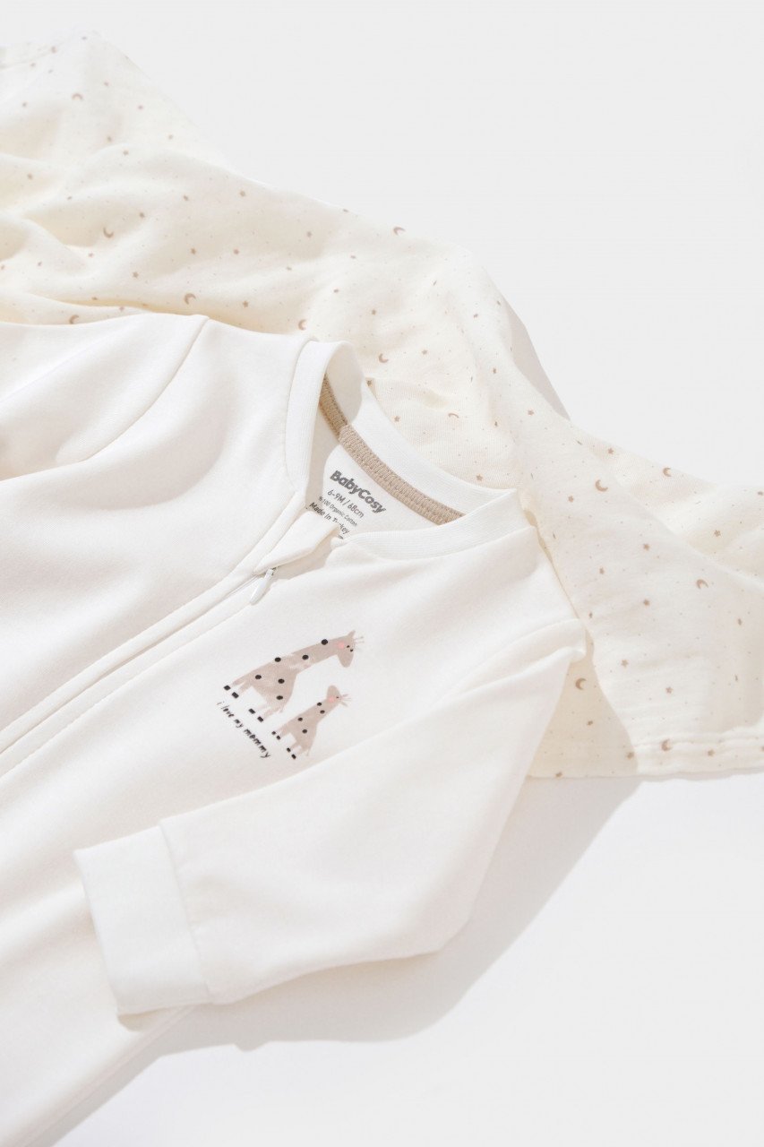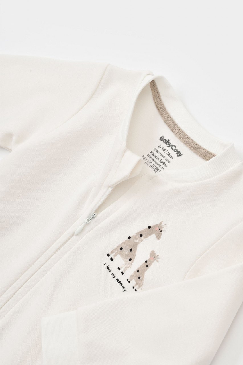 Salopeta cu fermoar Girafa, BabyCosy, 100% bumbac organic, Ecru (Marime: 12-18 Luni)