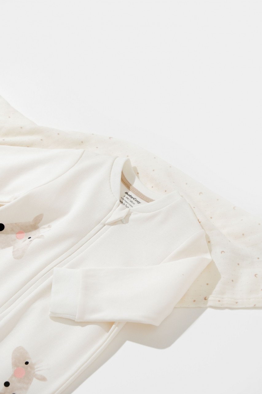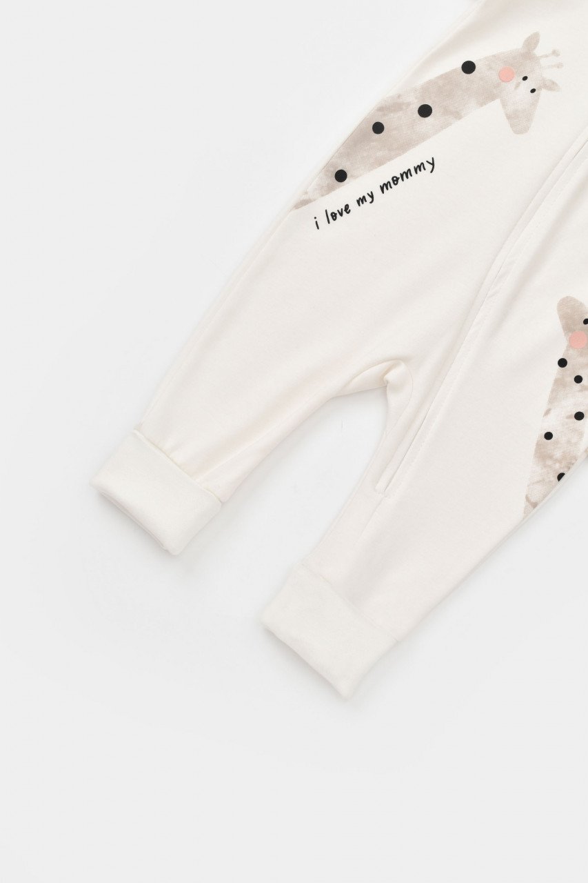Salopeta cu fermoar Girafe, BabyCosy, 100% bumbac organic, Ecru (Marime: 6-9 luni)