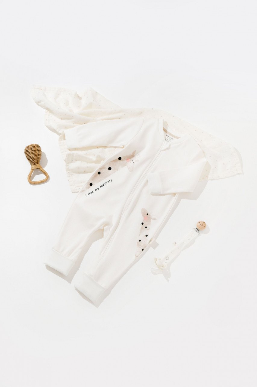 – Este realizat din bumbac organic 100% – material certificat GOTS, delicat cu pielea gingasa a a bebelusului. Printurile sunt cu vopseluri pe baza de apa si toate produsele sunt in concordanta cu standardele GOTS.