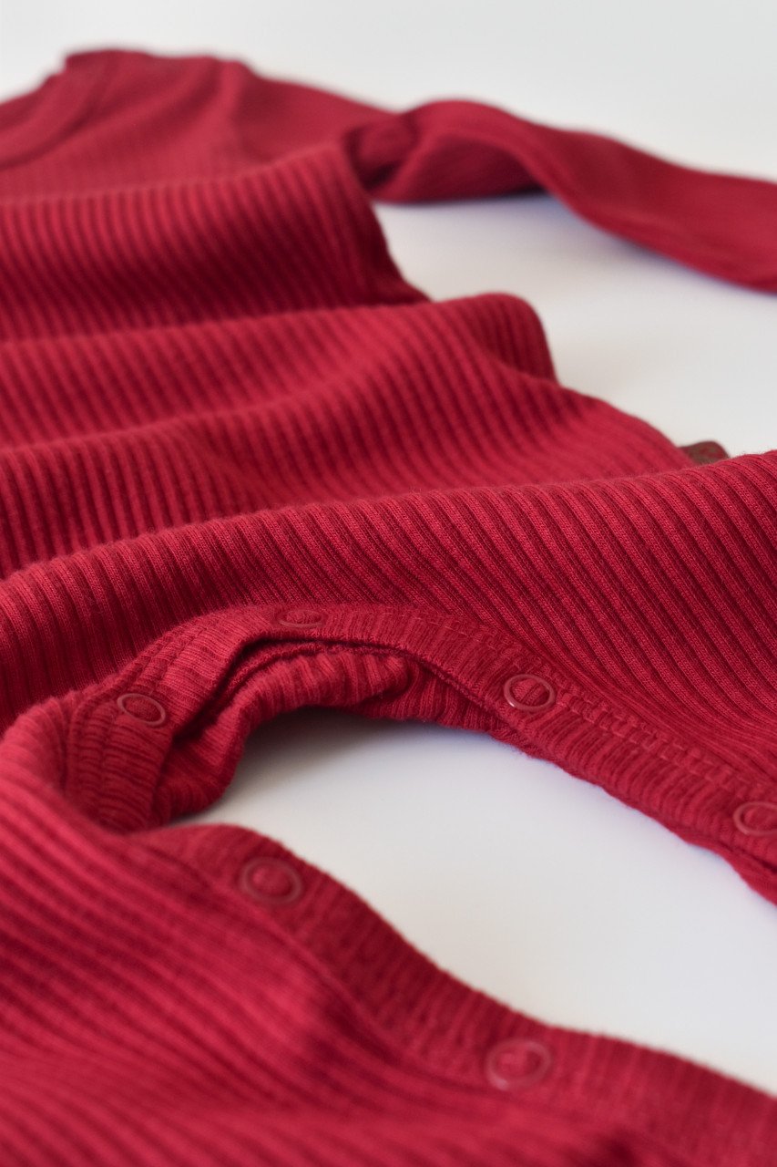 Salopeta cu maneca lunga si panataloni lungi din bumbac organic si modal – Rosu (Marime: 9-12 luni)