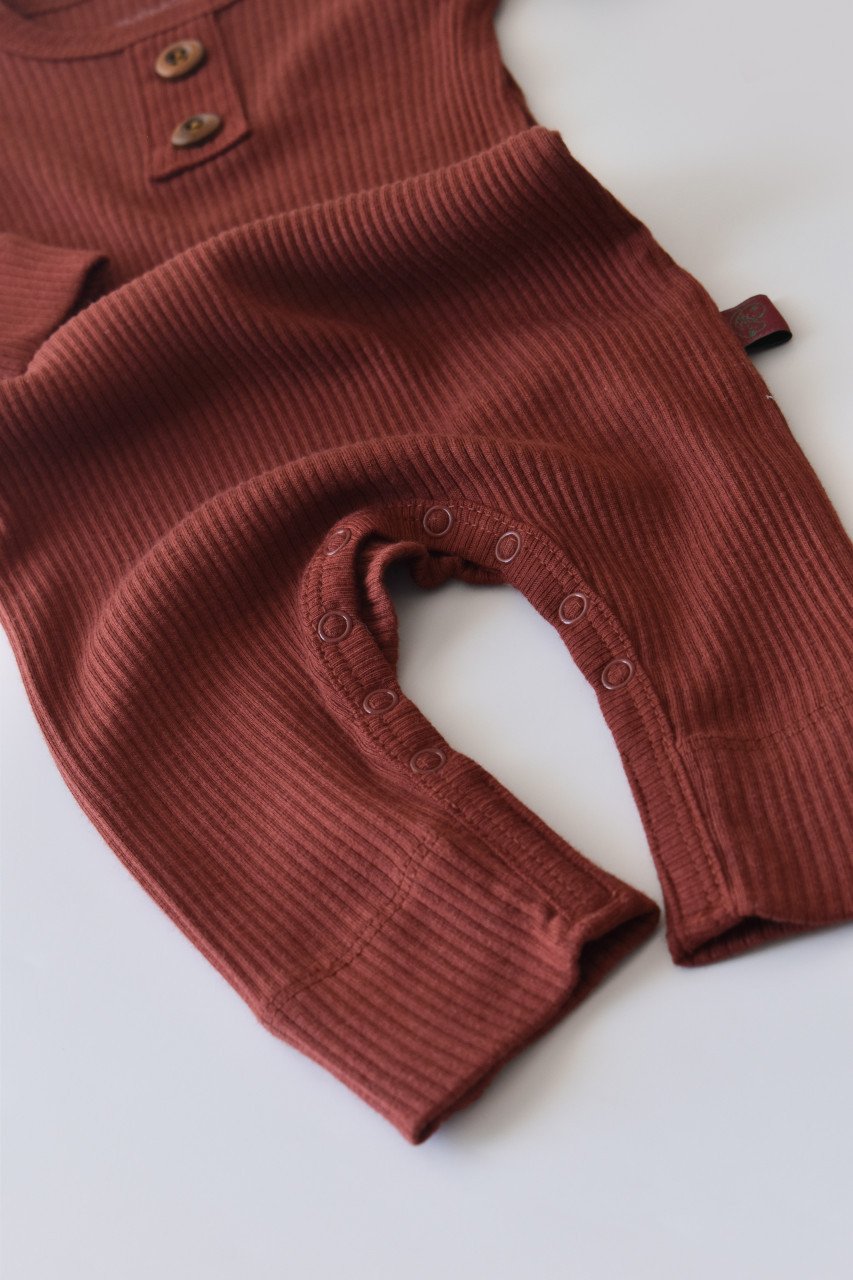 Salopeta cu maneca lunga si pantaloni lungi din bumbac organic si modal – Caramiziu BabyCosy (Marime: 18-24 Luni)
