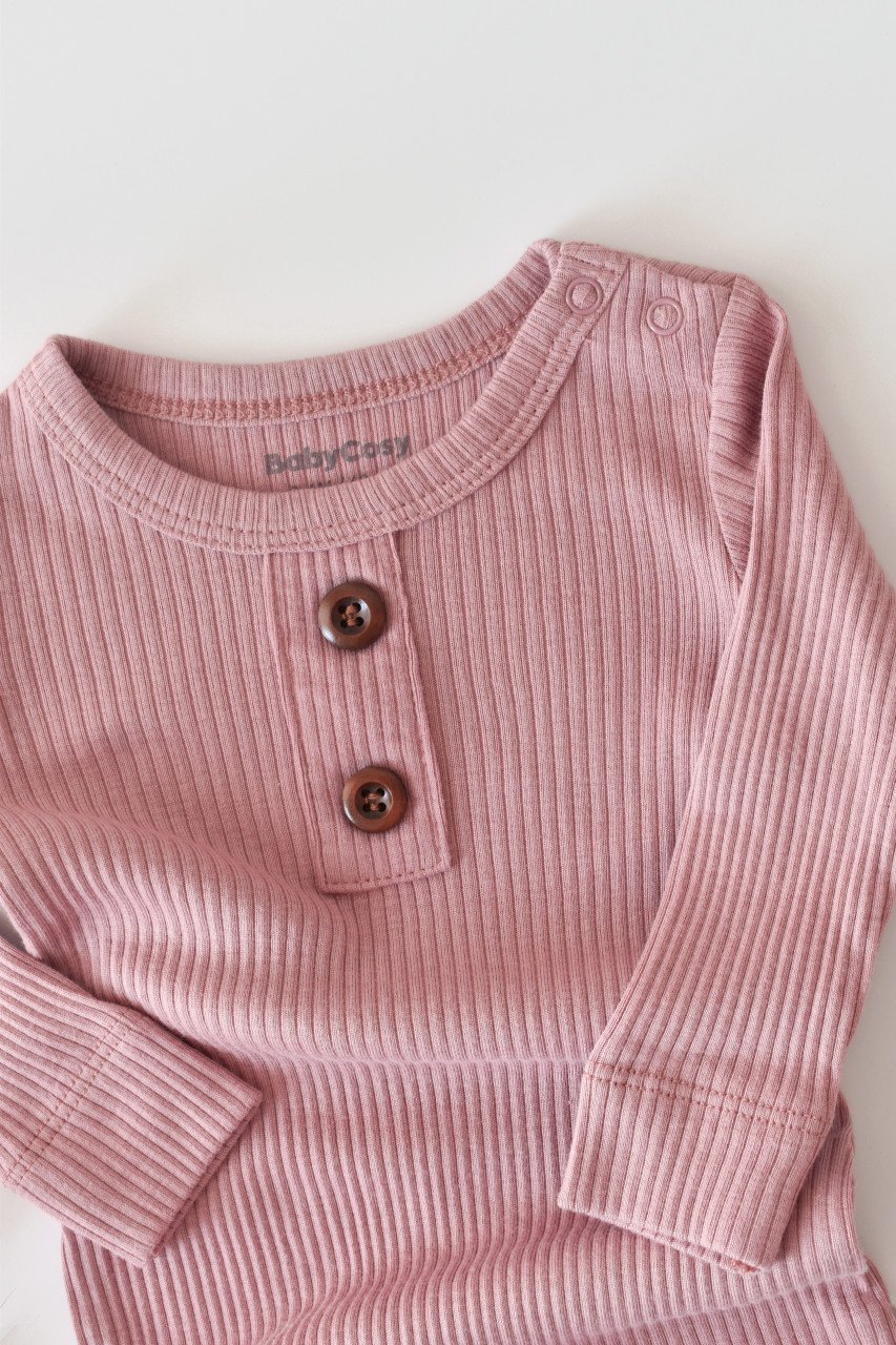 Salopeta cu maneca lunga si pantaloni lungi din bumbac organic si modal – Roz BabyCosy (Marime: 9-12 luni)