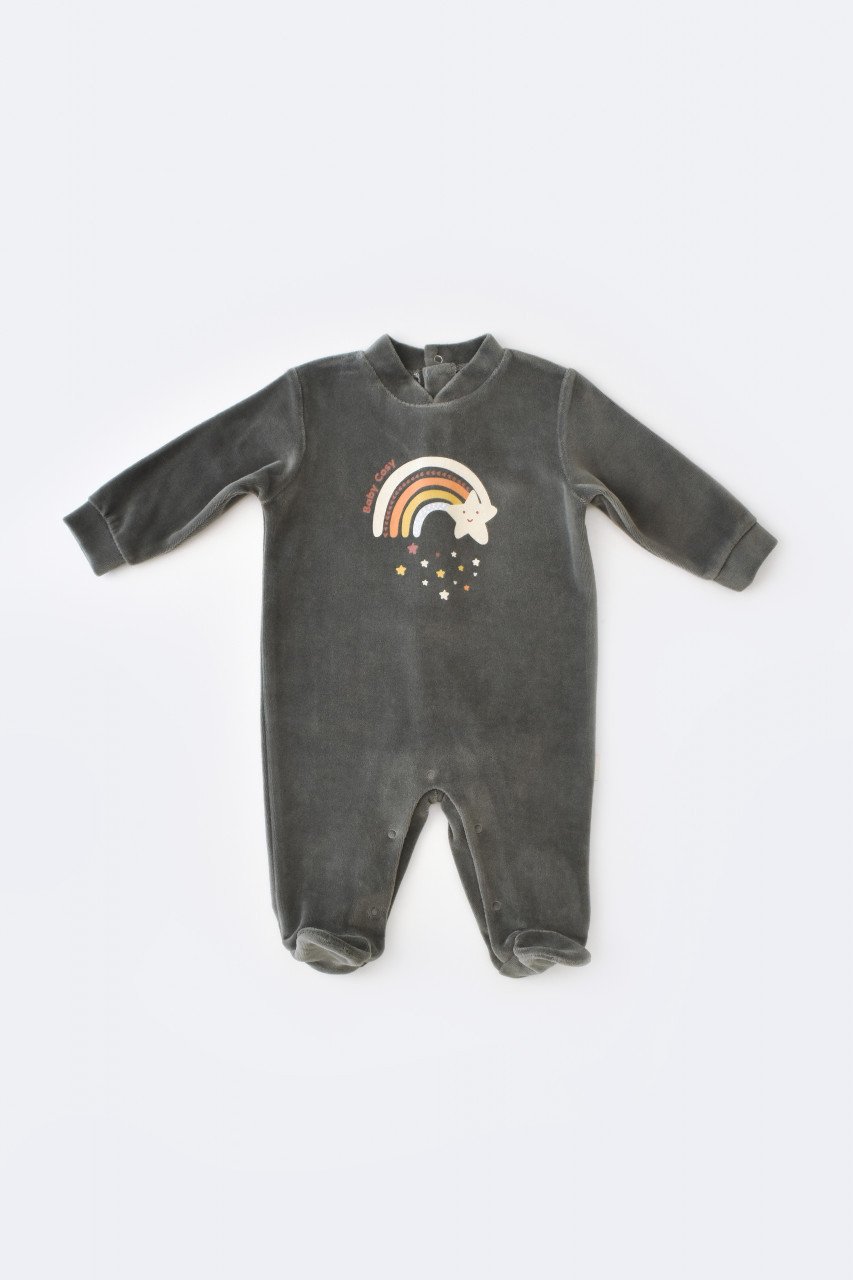 Salopeta Curcubeu cu maneca lunga si botosei din 80%bumbac organic si 20% poliester – Antracit, BabyCosy (Marime: 0-3 Luni)