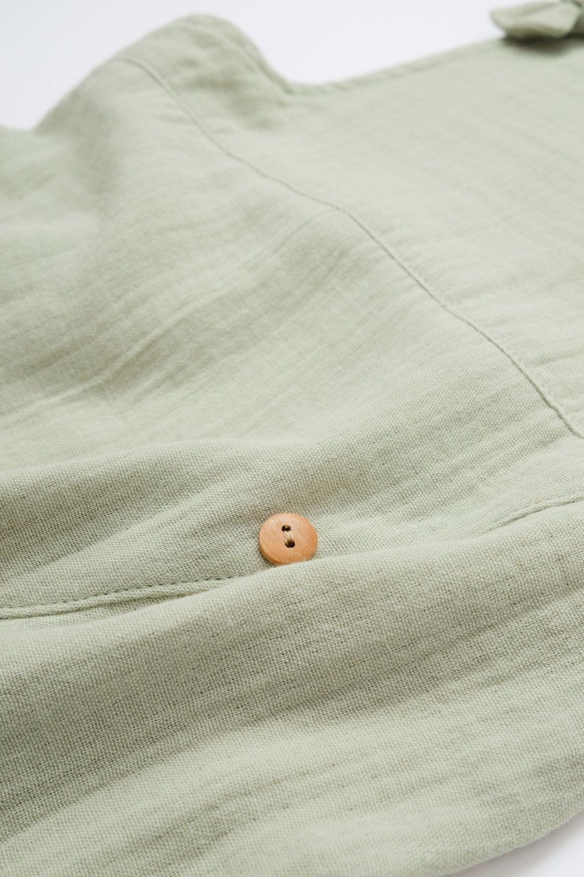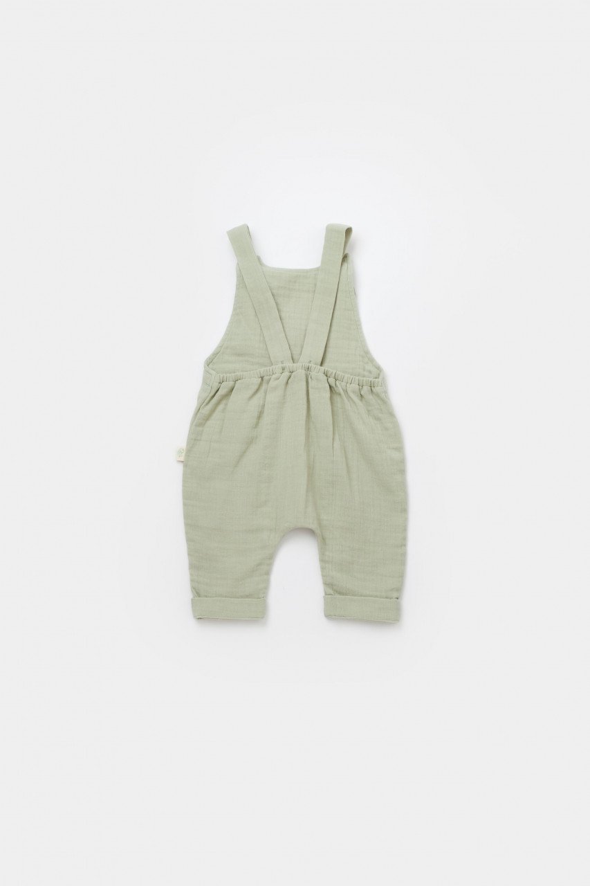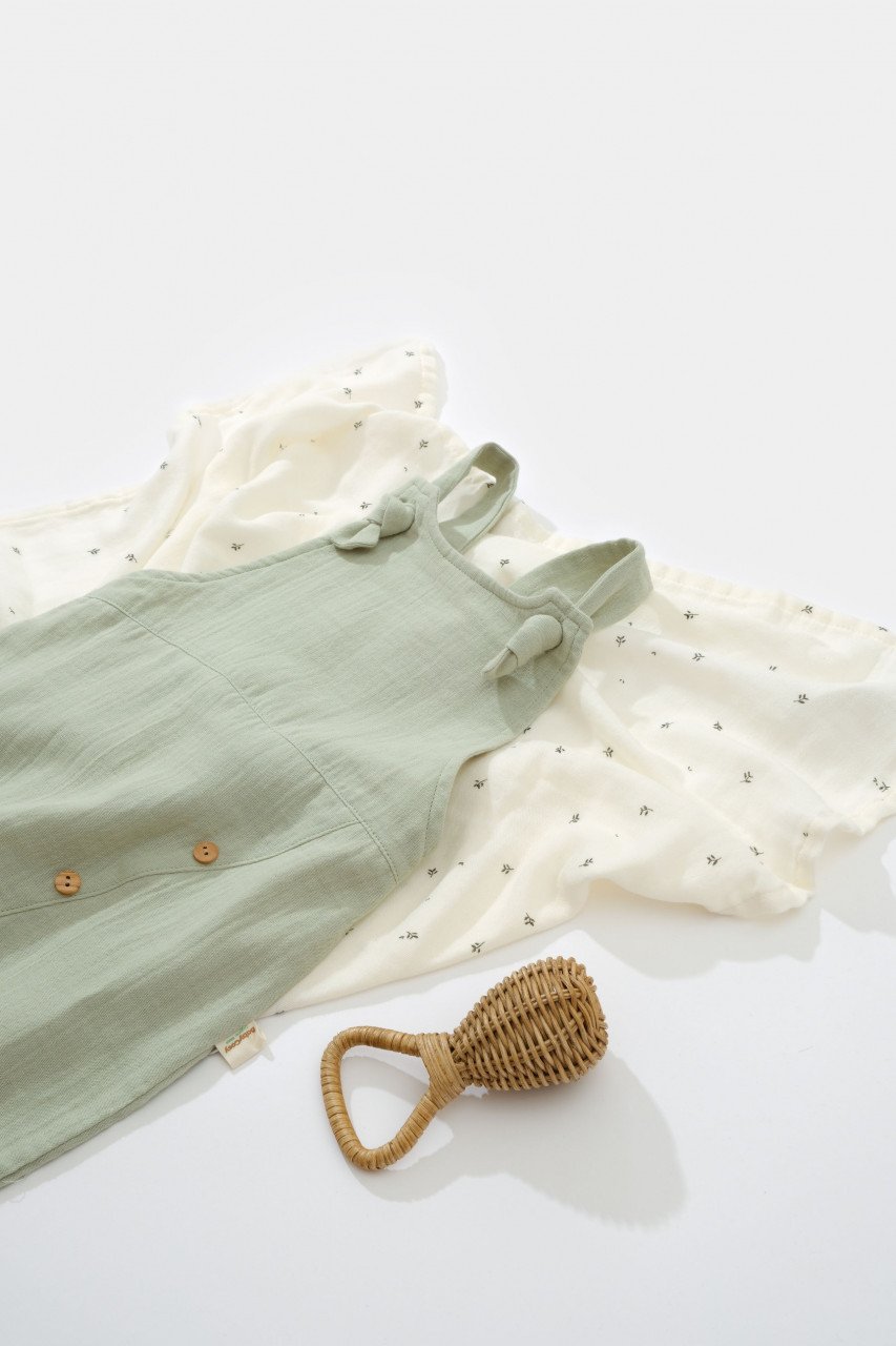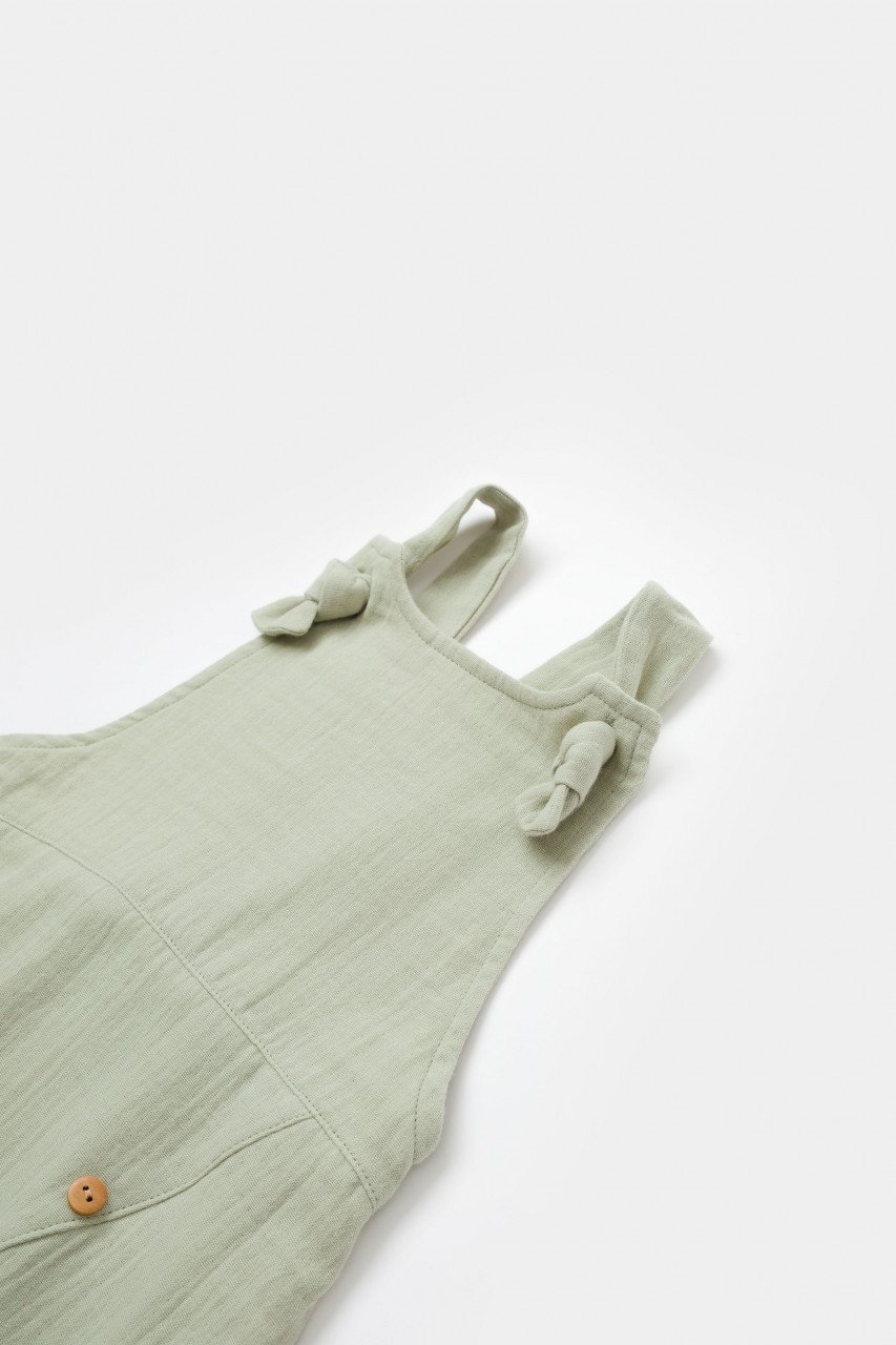 Salopeta de vara cu pantaloni lungi din muselina, BabyCosy, 100% bumbac organic, verde (Marime: 6-9 luni)