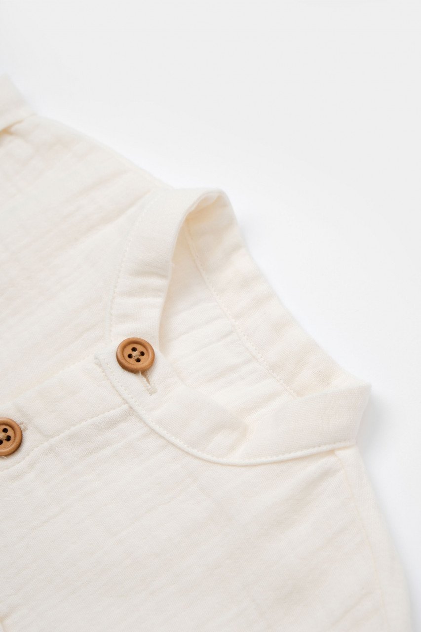 Salopeta de vara din muselina, BabyCosy, 100% bumbac organic, ecru (Marime: 18-24 Luni)