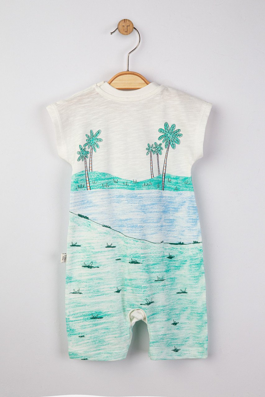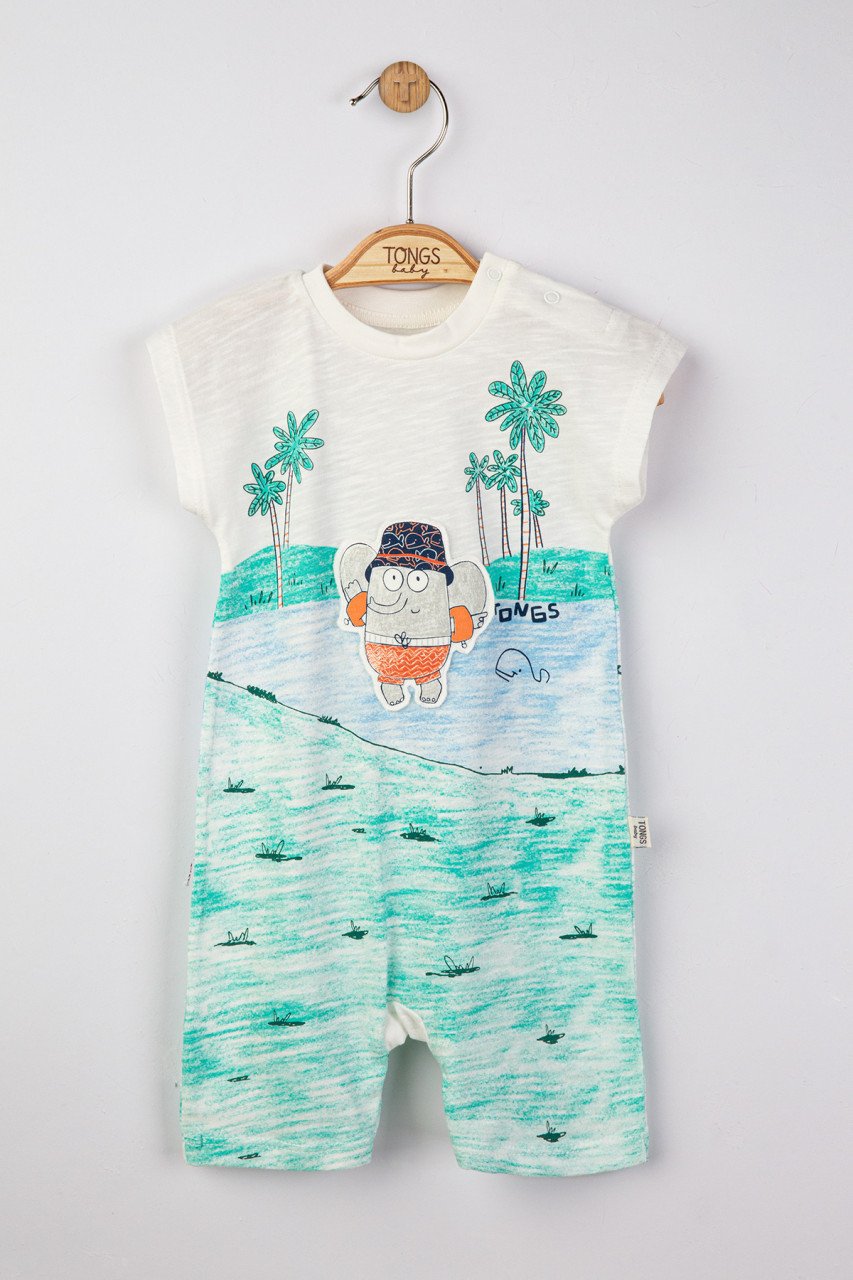 Salopeta de vara pentru bebelusi Elefantel din bumbac, delicata cu pielea bebelusului, ideala pentru plimbarile zilnice.