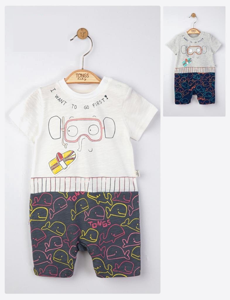 Salopeta de vara pentru bebelusi Swim din bumbac, delicata cu pielea bebelusului, ideala pentru plimbarile zilnice.