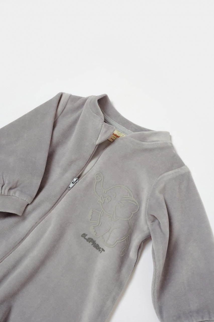 Salopeta Elefant cu maneca lunga din 80%bumbac organic si 20% poliester – Gri, BabyCosy (Marime: 6-9 luni)