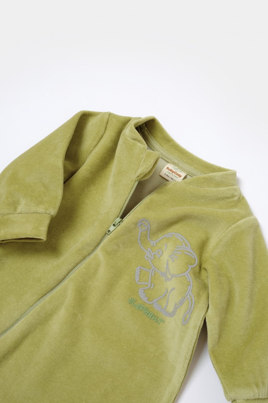 Salopeta Elefant cu maneca lunga din 80%bumbac organic si 20% poliester – Verde, BabyCosy (Marime: 3-6 Luni)
