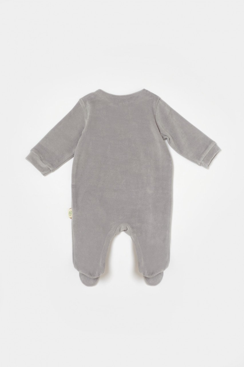 Salopeta Elefant cu maneca lunga si botosei din 80%bumbac organic si 20% poliester – Gri, BabyCosy (Marime: 6-9 luni)