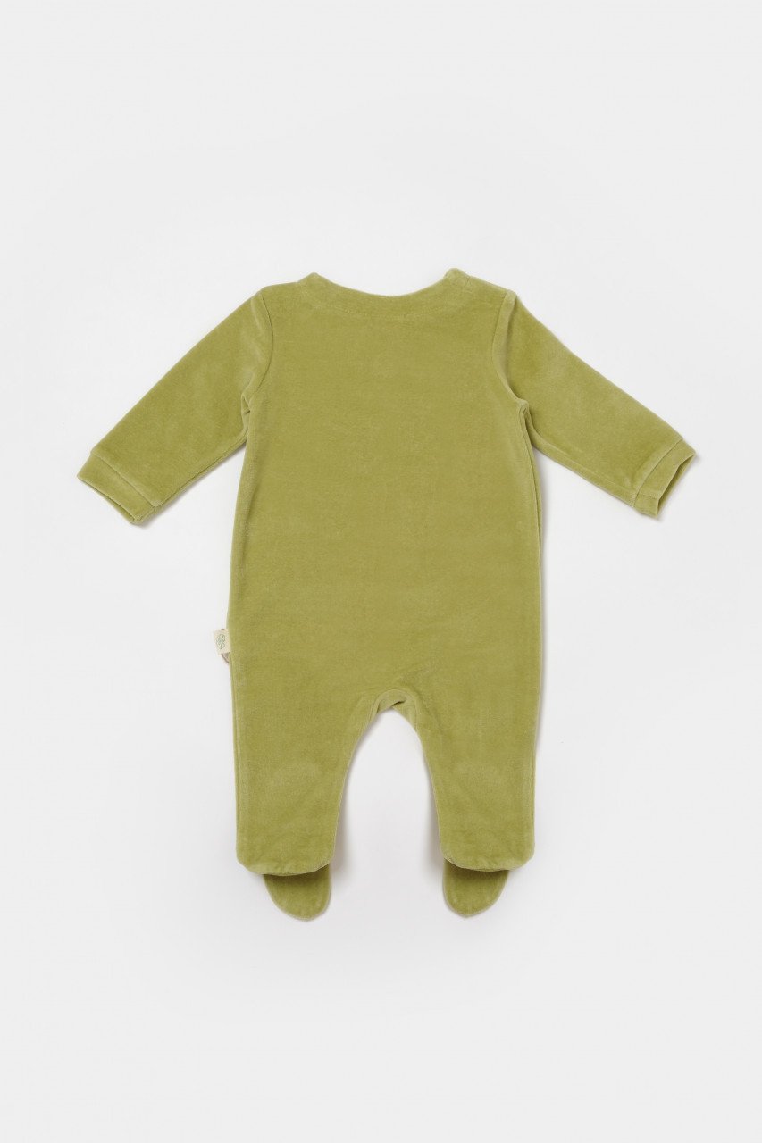 Salopeta Elefant cu maneca lunga si botosei din 80%bumbac organic si 20% poliester – Verde, BabyCosy (Marime: 6-9 luni)