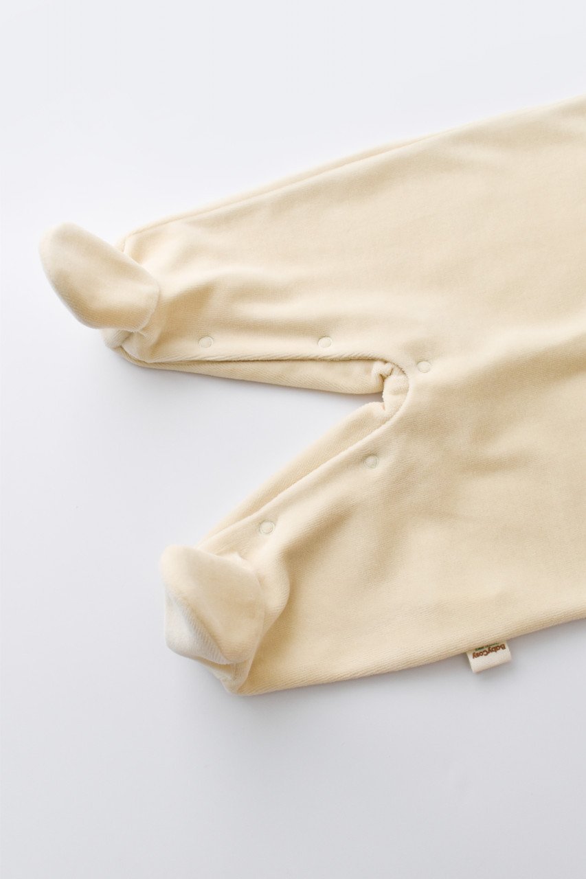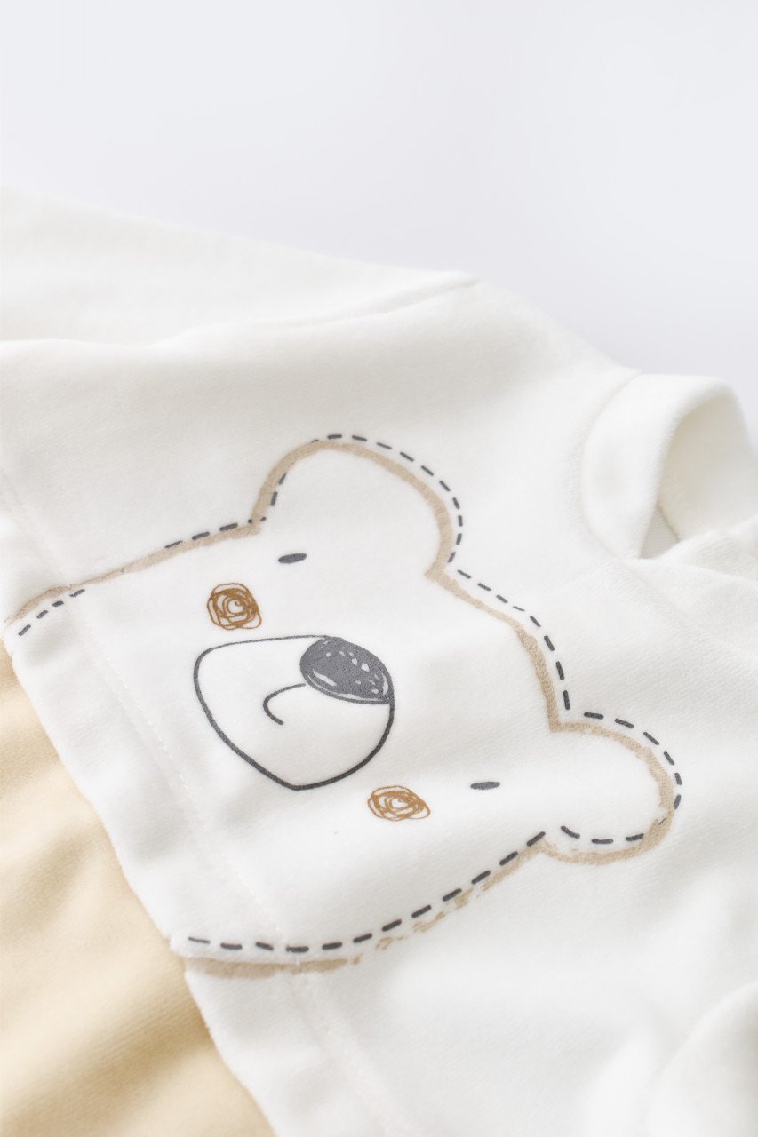Salopeta Ursulet cu maneca lunga si botosei din 80%bumbac organic si 20% poliester – Crem, BabyCosy (Marime: 3-6 Luni)