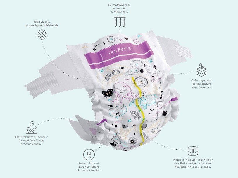 Scutece Supreme Agnotis ofera bebeluslui tau confort maxim și protecție optimă fiind special concepute pentru pielea sensibilă a acestora.