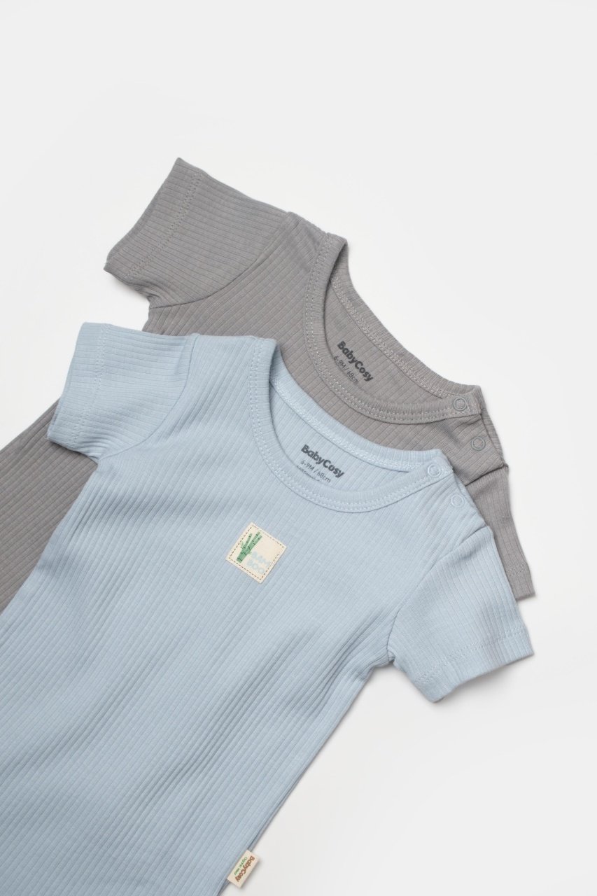 Set 2 body Bamboo, blue, BabyCosy, 50% bumbac+50%bambus (Marime: 3-6 Luni)