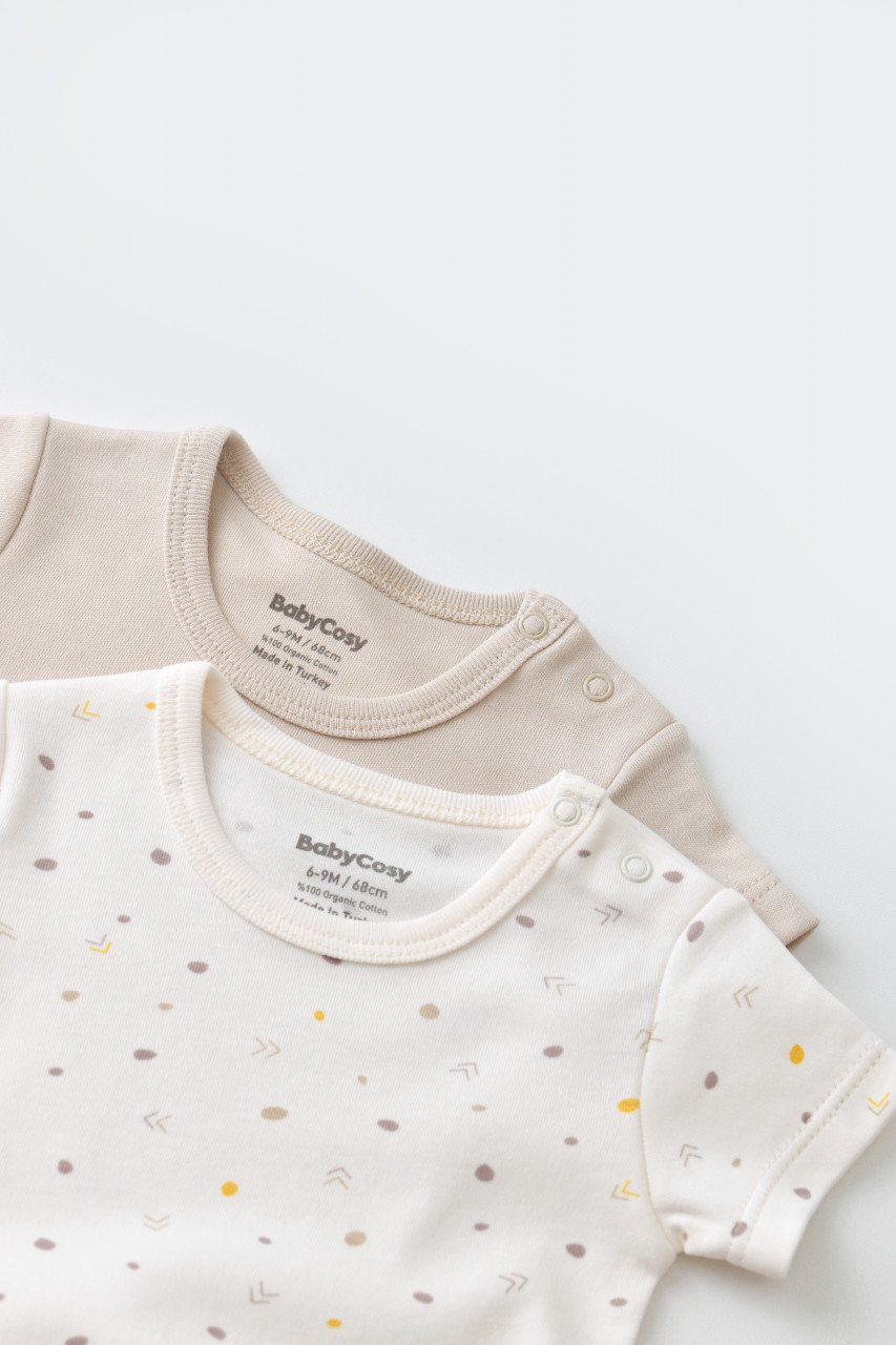 Set 2 body-uri bebe unisex -100% bumbac organic – Ecru cu buline, BabyCosy (Marime: 9-12 luni)