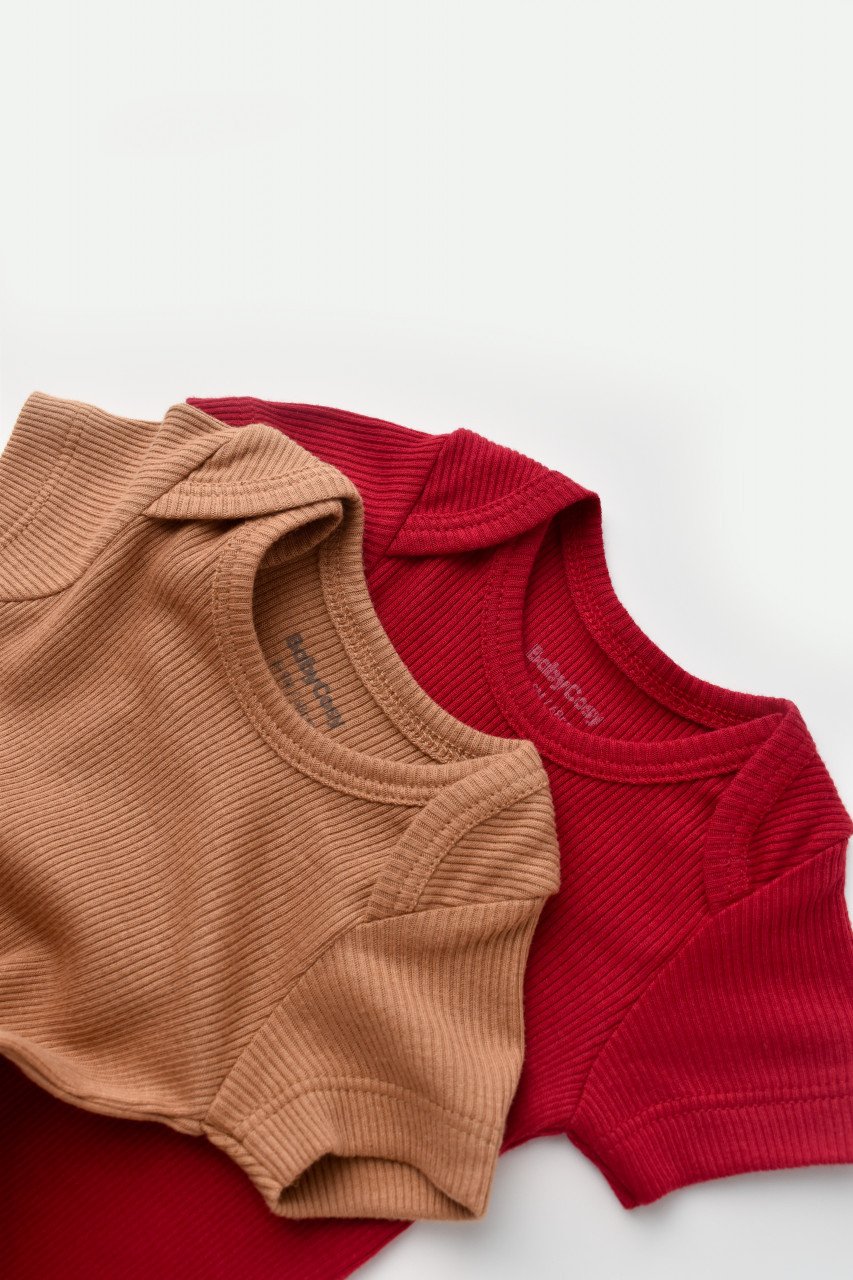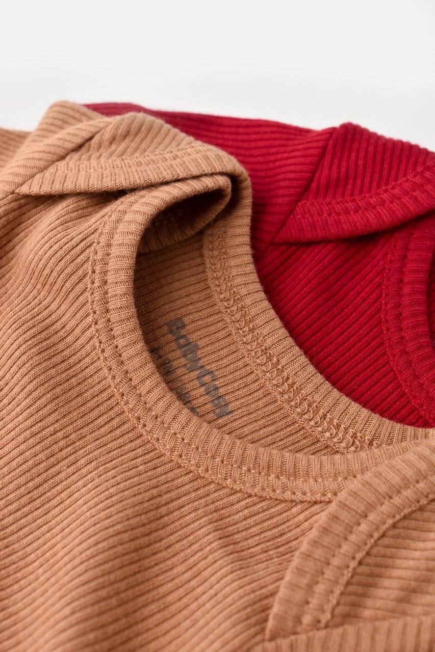 Set 2 body-uri bebe unisex din bumbac organic si modal – Maro/Rosu, BabyCosy (Marime: 12-18 Luni)