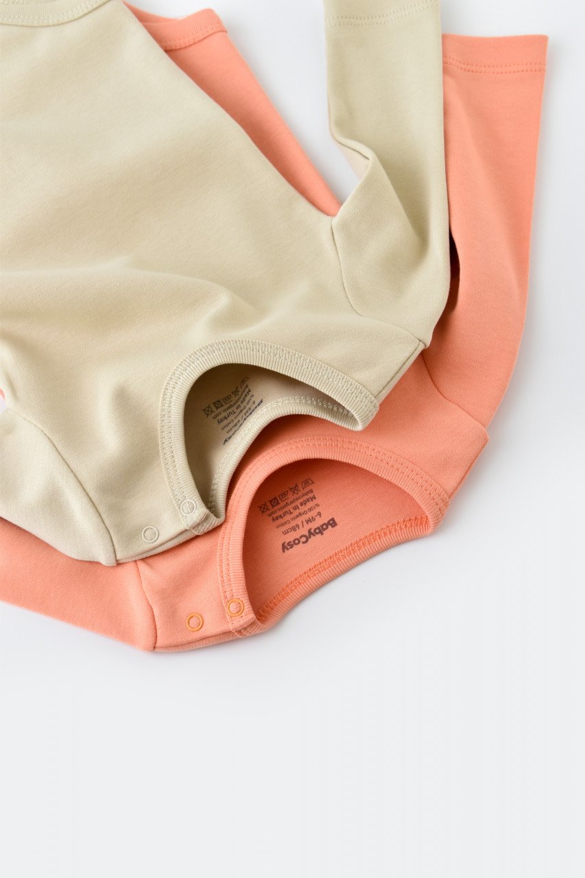 Set 2 body-uri cu maneca lunga bebe unisex -100% bumbac organic – Roz/Crem, BabyCosy (Marime: 6-9 luni)