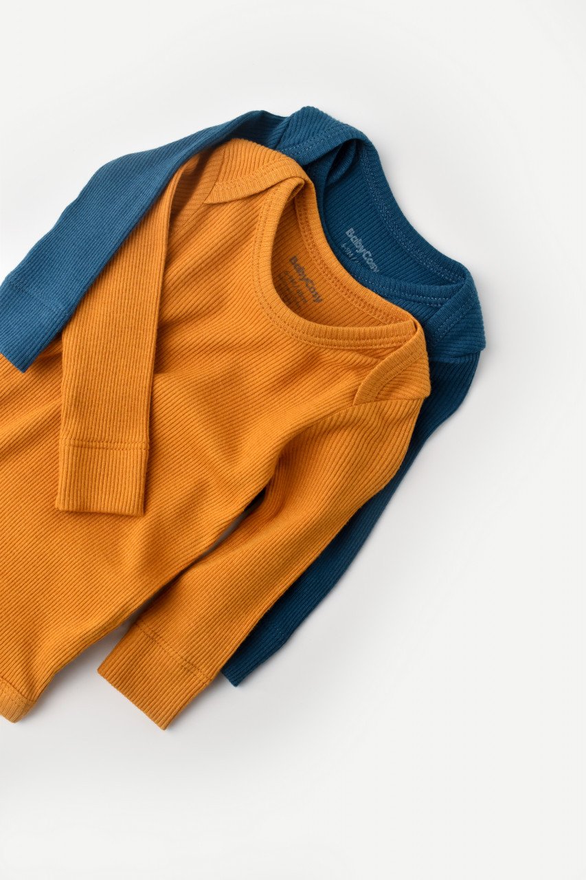 Set 2 body-uri cu maneca lunga bebe unisex din bumbac organic si modal – Bleumarin/Sofran, BabyCosy (Marime: 12-18 Luni)