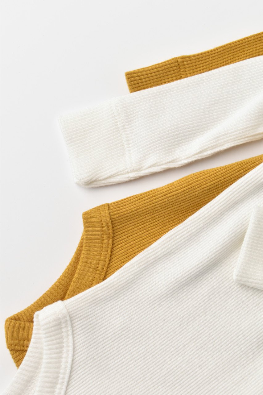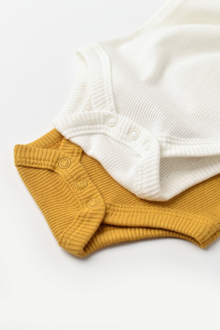 Set 2 body-uri cu maneca lunga bebe unisex din bumbac organic si modal – Mustar/Ecru, Baby Cosy (Marime: 6-9 luni)