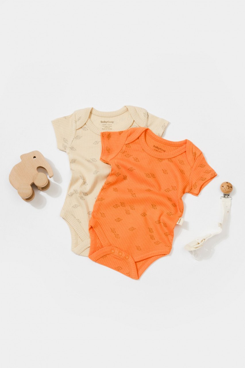 Set 2 body-uri Printed, BabyCosy, 50% modal+50% bumbac, Stone/Apricot (Marime: 3-6 Luni)