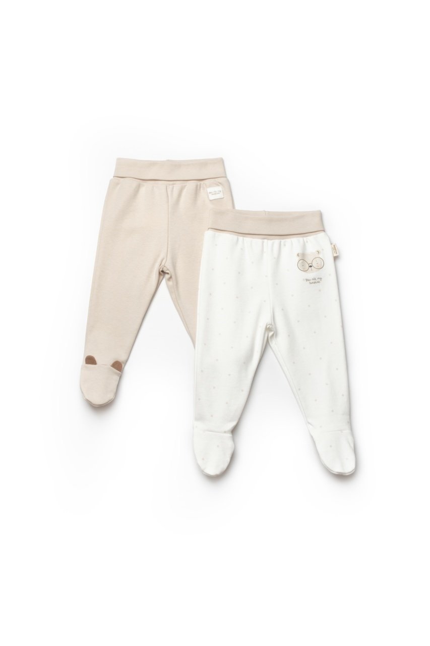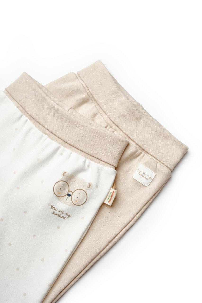 Set 2 pantaloni cu botosei bebe TeddyBear, BabyCosy, 100% bumbac organic (Marime: 3-6 Luni)