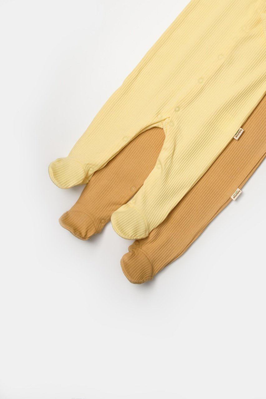 Set 2 salopete lungi Bamboo, galben, BabyCosy, 50%bumbac+50% bambus (Marime: 0-3 Luni)