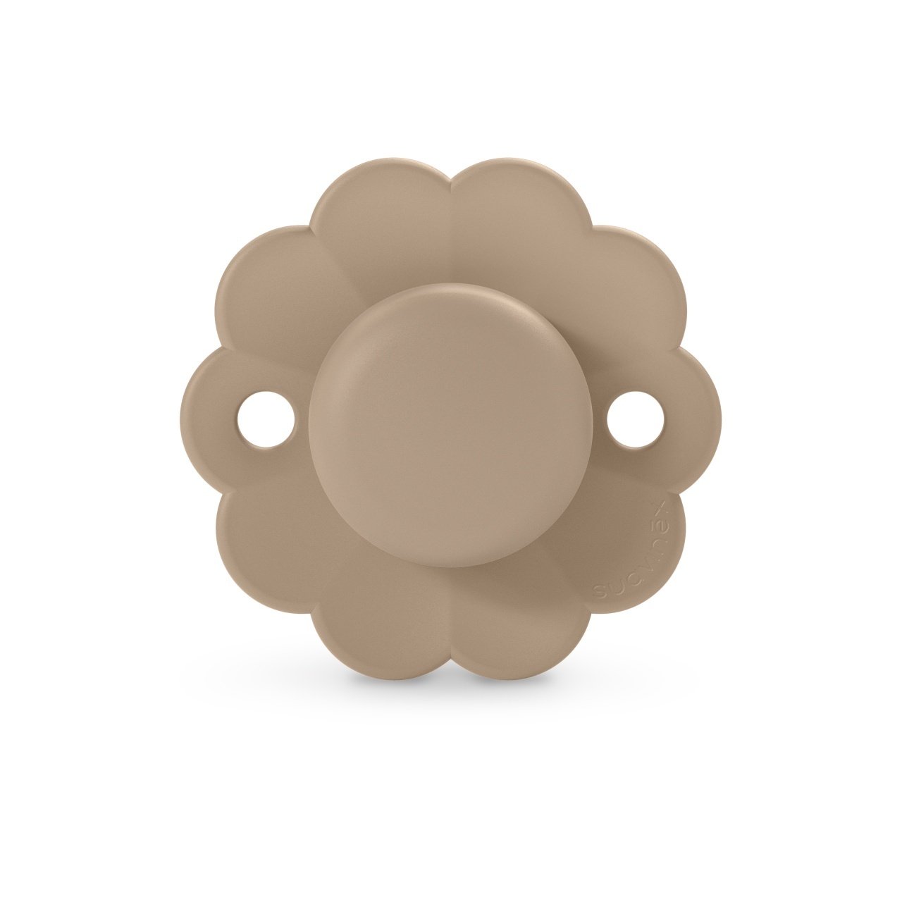 Fără mâner, forma și dimensiunea suzetei permit copiilor să o manevreze singuri.