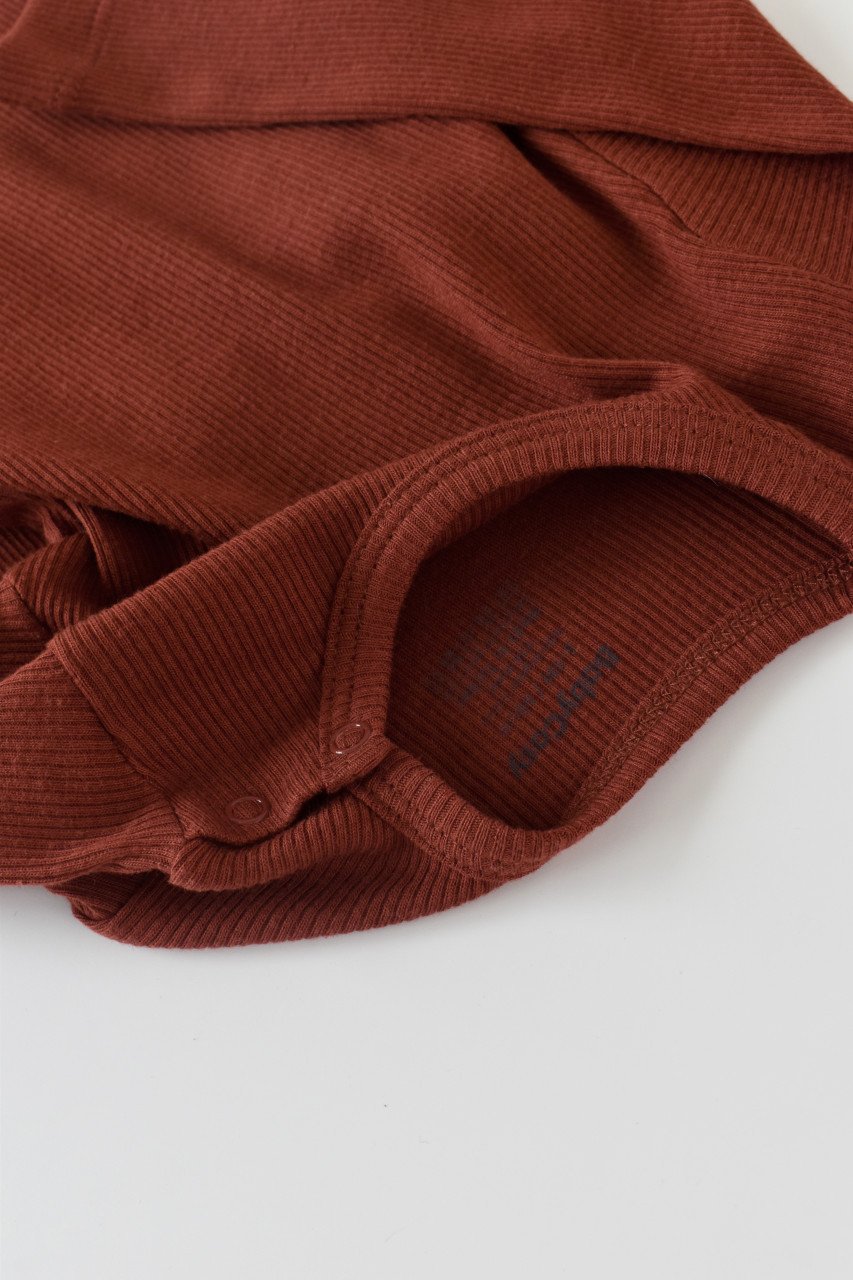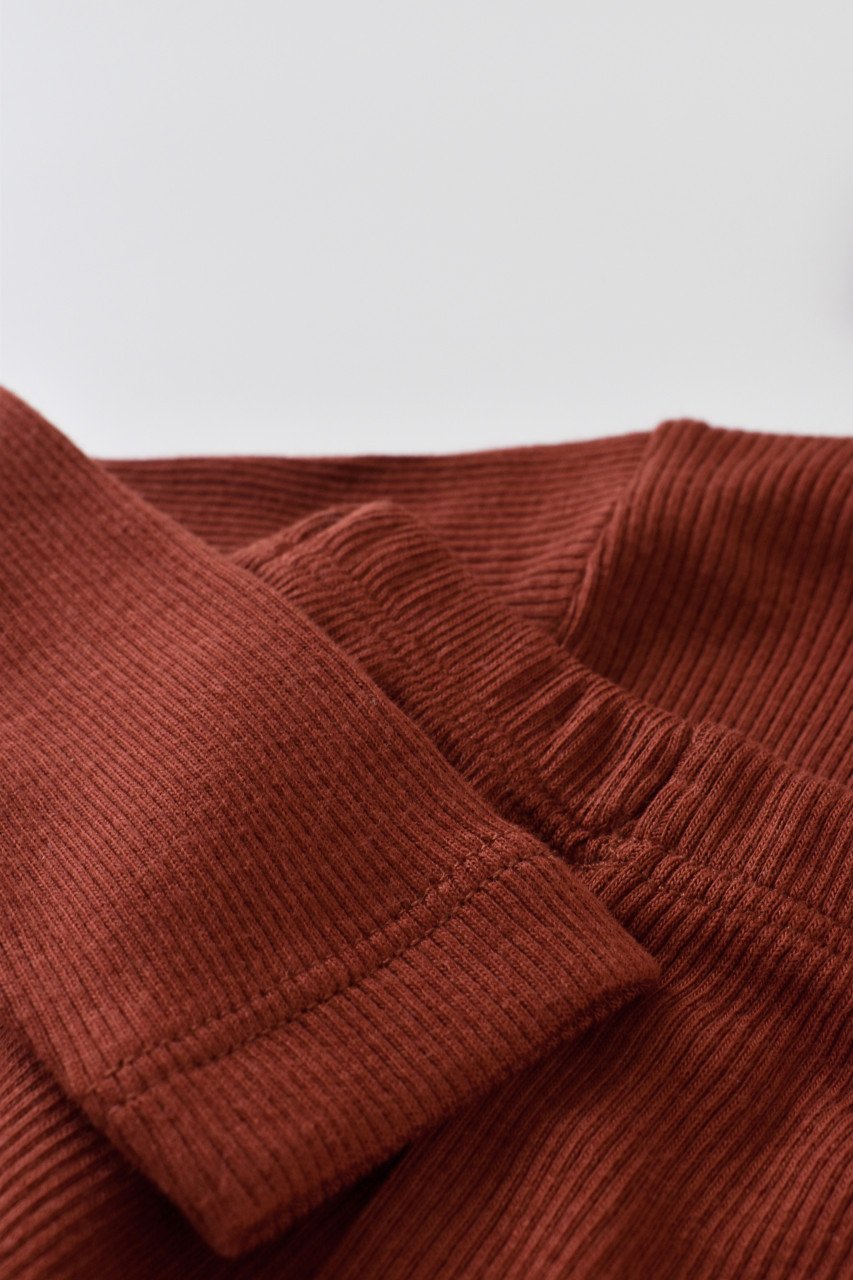 Set 3 piese: bluzita cu maneca lunga, panataloni lungi si caciulita din bumbac organic si modal – Caramiziu (Marime: 9-12 luni)