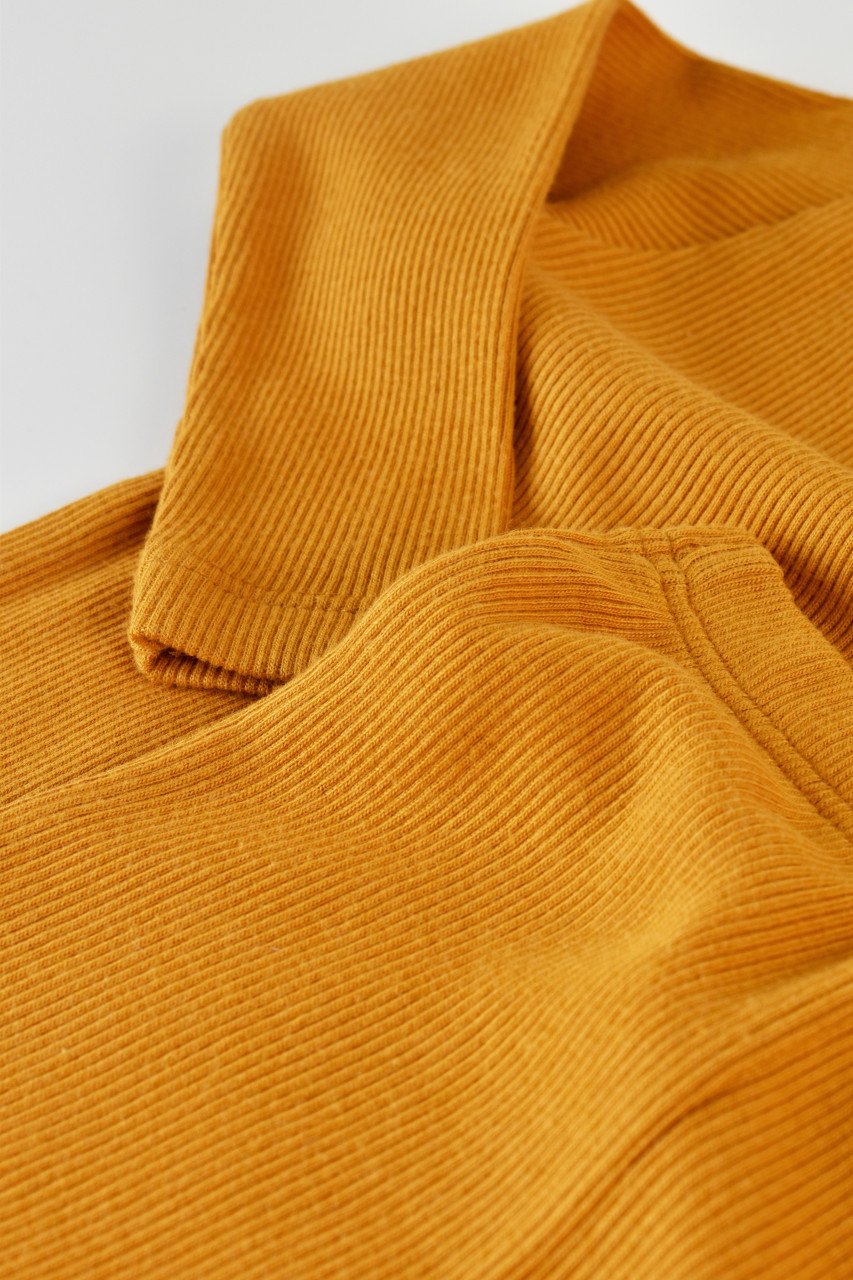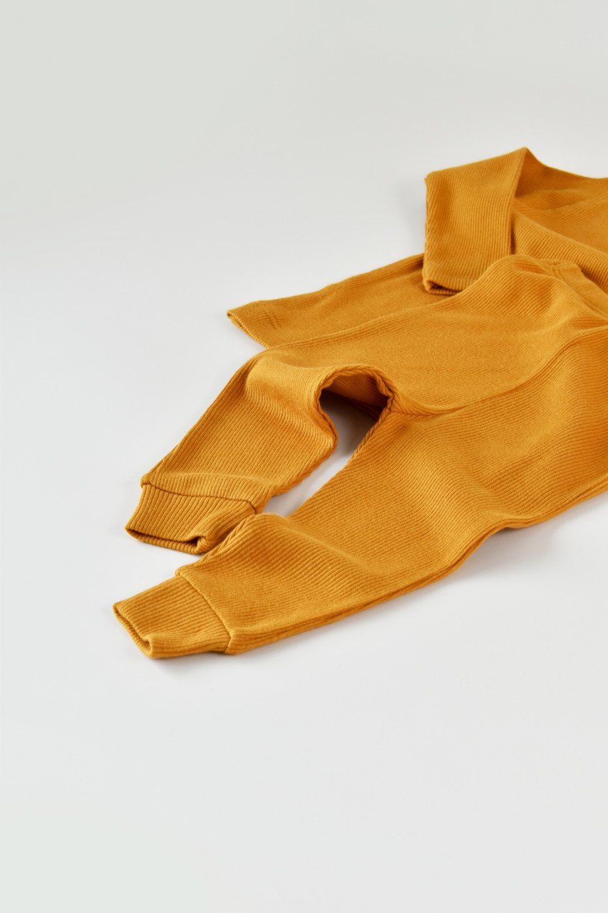 Set 3 piese: bluzita cu maneca lunga, panataloni lungi si caciulita din bumbac organic si modal – Mustar (Marime: 3-6 Luni)