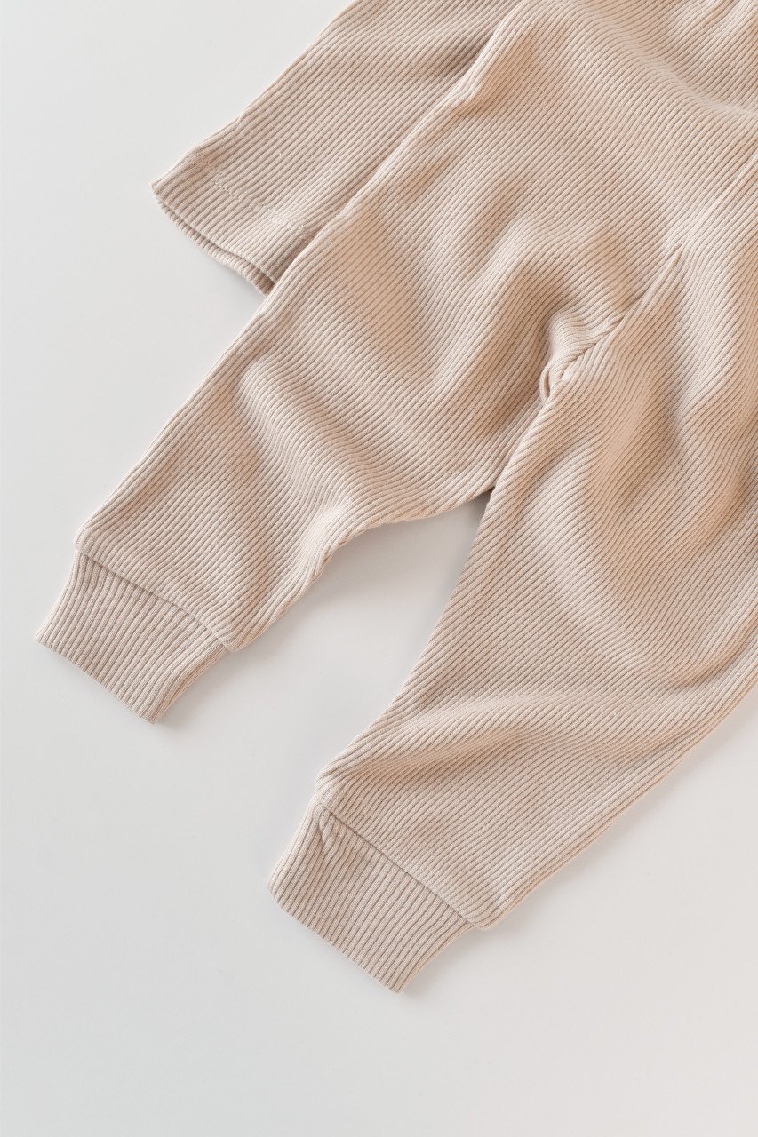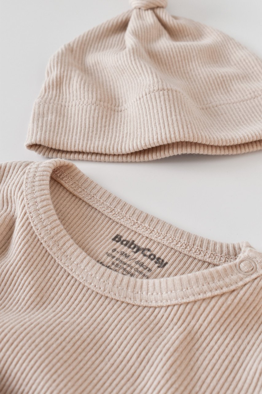 Set 3 piese: bluzita cu maneca lunga, pantaloni lungi si caciulita din bumbac organic si modal – Blush, BabyCosy (Marime: 6-9 luni)